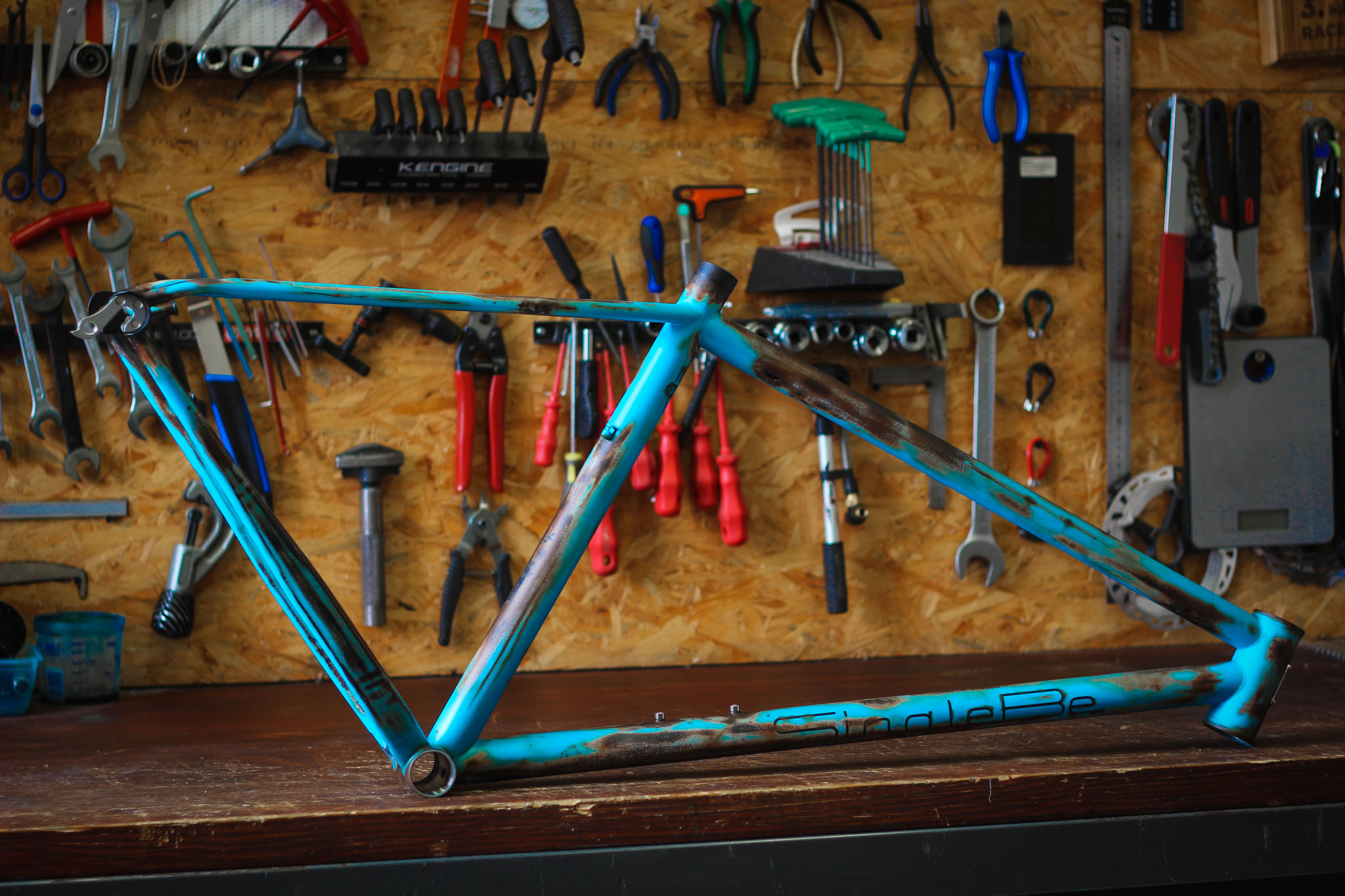 Po delší době jsme si opět vyzkoušeli vytvořit ocelový rám v barvě imitující korozi a velké stáří. Po necelých třech dnech práce výsledek opravdu stojí za to. Posoudit můžete sami.