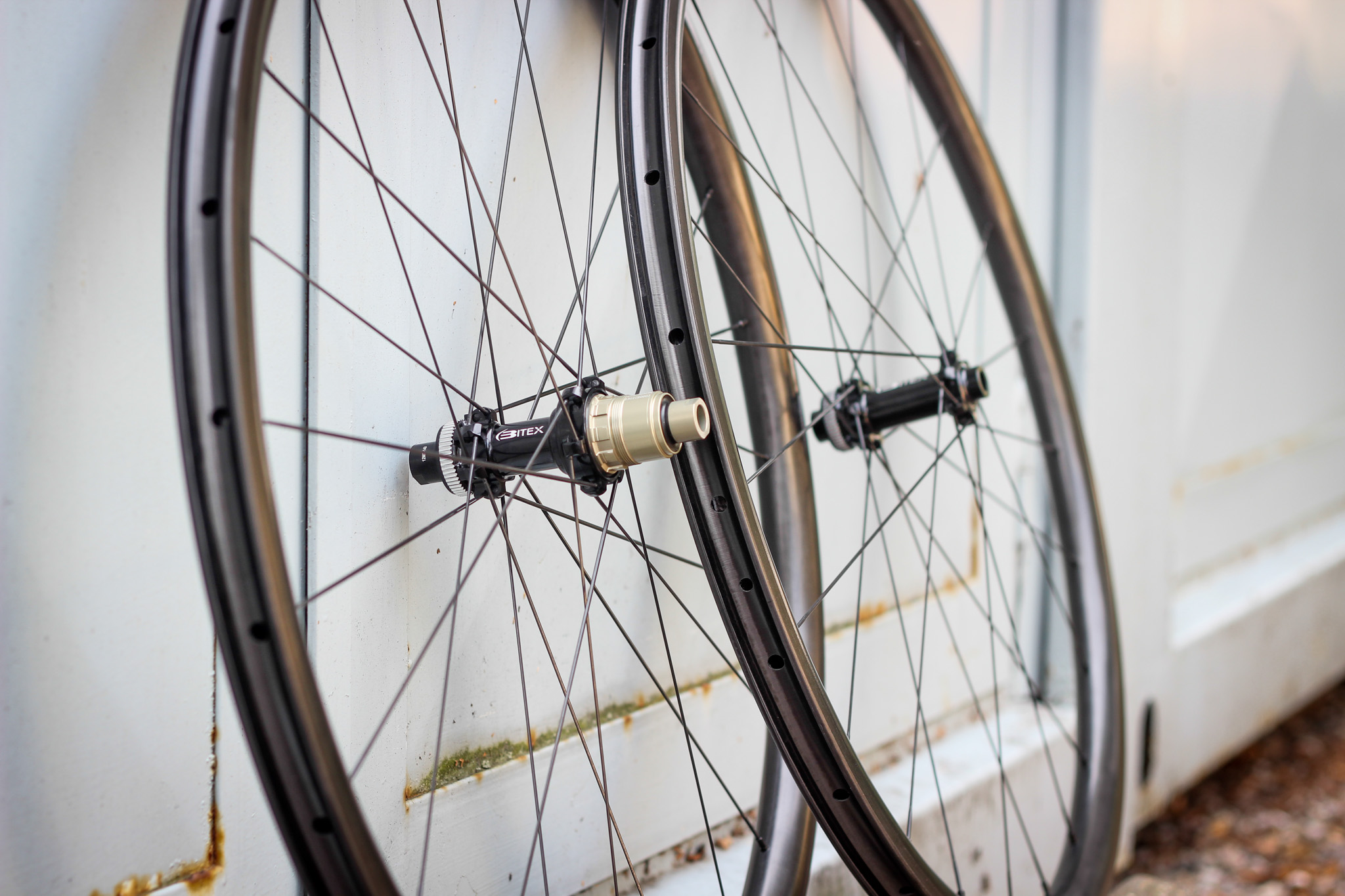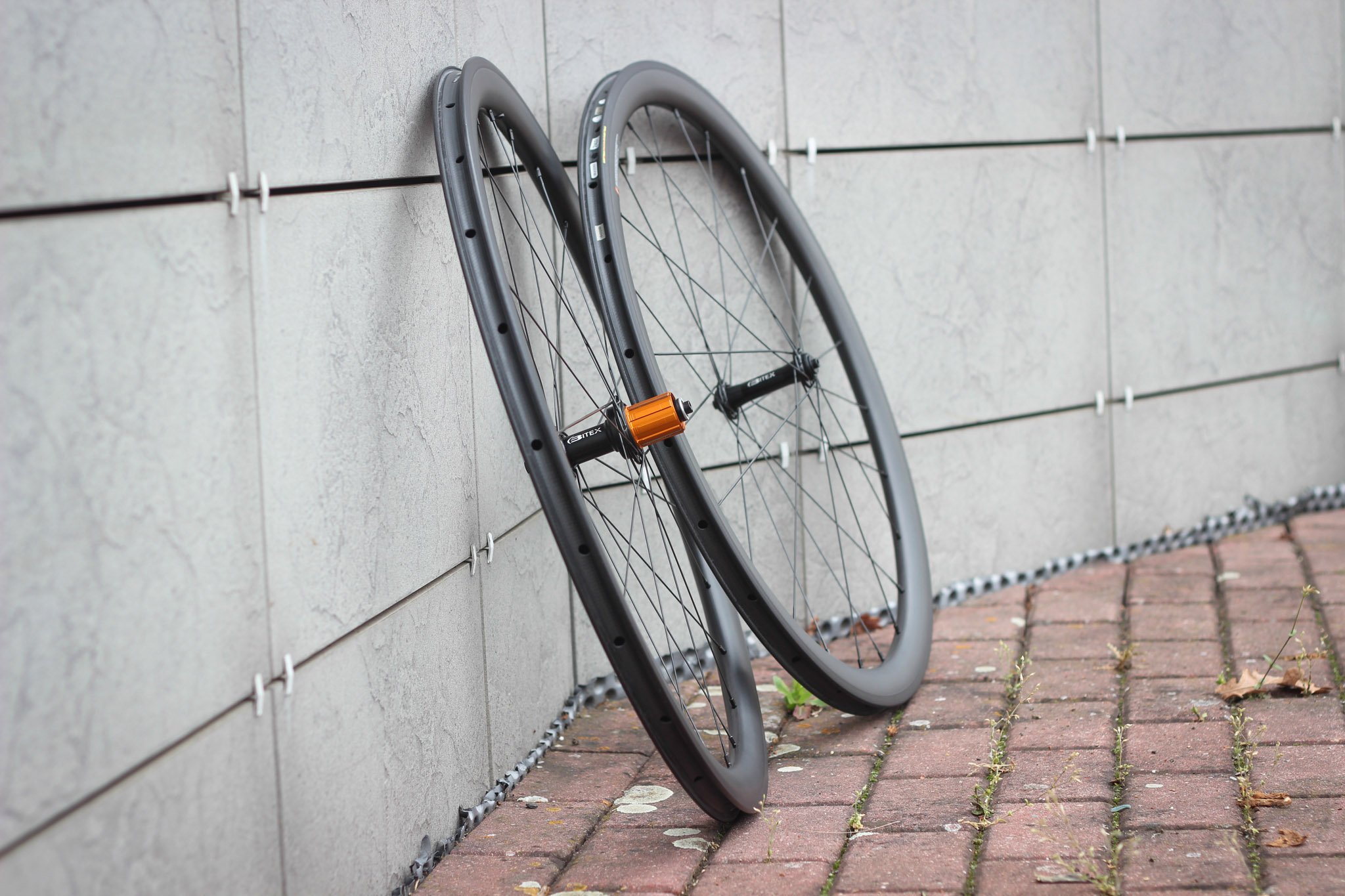 We use high quality carbon rims fom our supplier and hubs from brands like Bitex, DT Swiss, Hope, Chris King and others. We use plain, butted or aero Pillar spokes. Aluminium or brass nipples with or without washers. All is hand build and tension adjusted with a tensiometer.