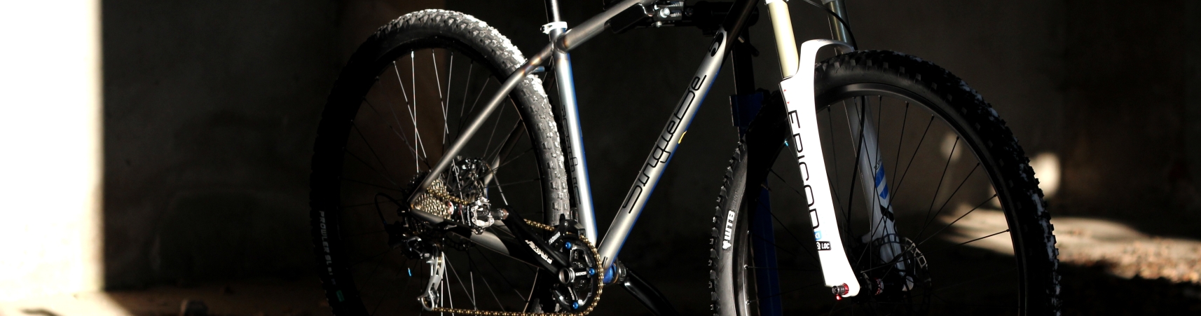 Steel singlespeed bike with Schwalbe Super Moto slick tires and gates carbon drive.