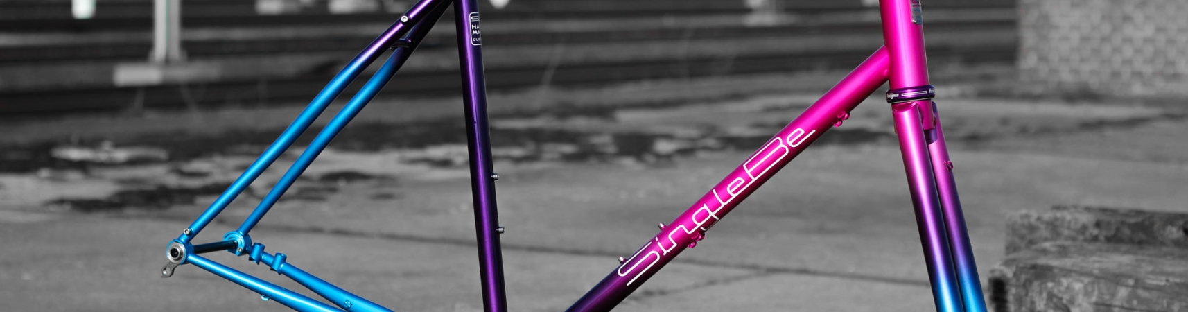 Steel frame and fork set with custom 3D printed front fender mounts. All in chameleon paint.