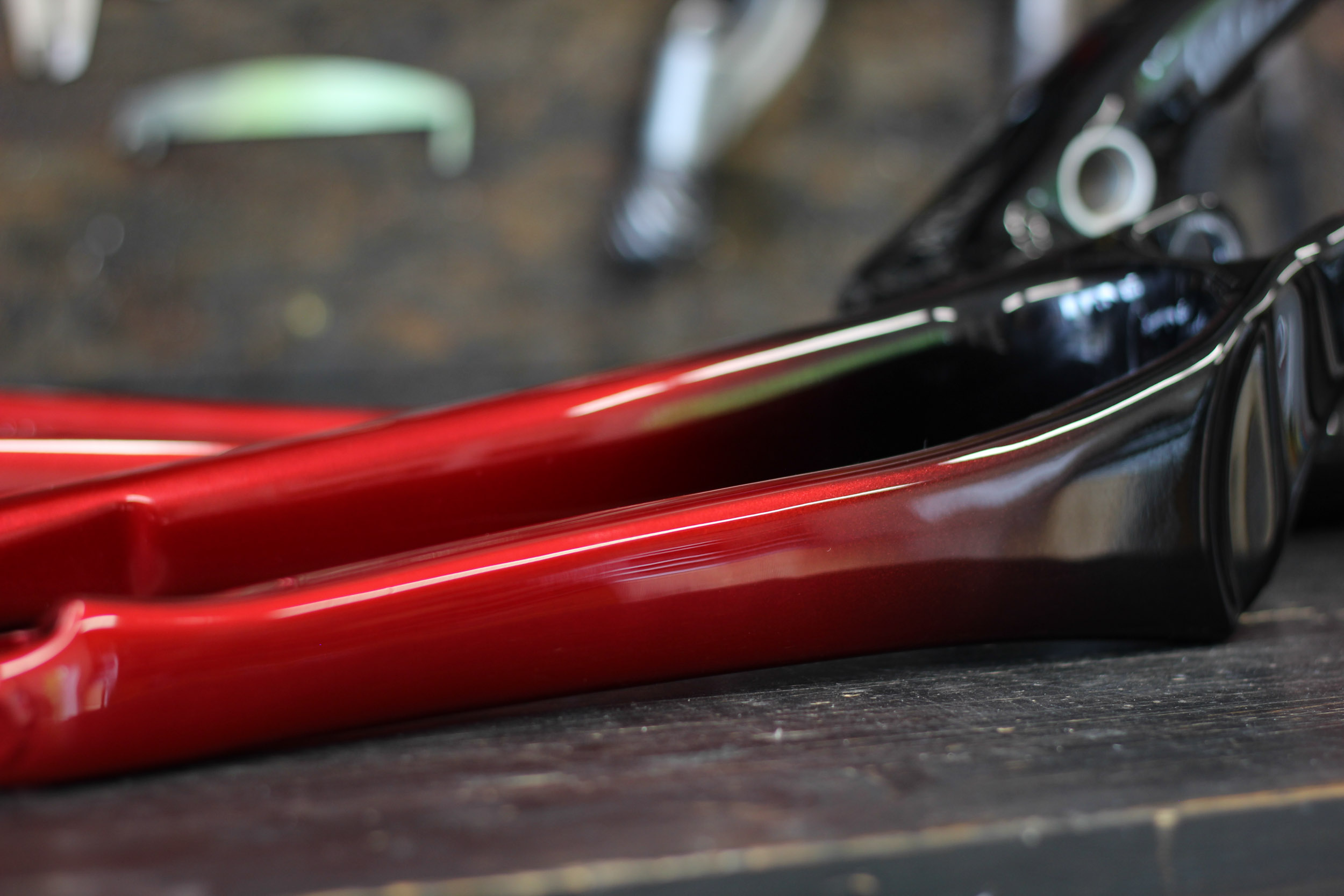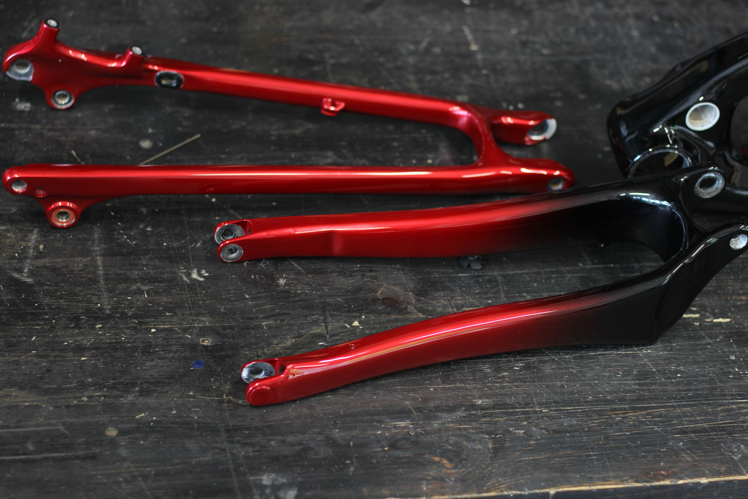 We also offer custom painting for other brands as well. We work with automotive and airbrush colors in matte or glossy clear coat finish. Your frame, fork, stem or whatever can get new fancy paint like metallic paints, candy ink paints, photochromatic paints and the others. Look at the gallery bellow to see our past projects.