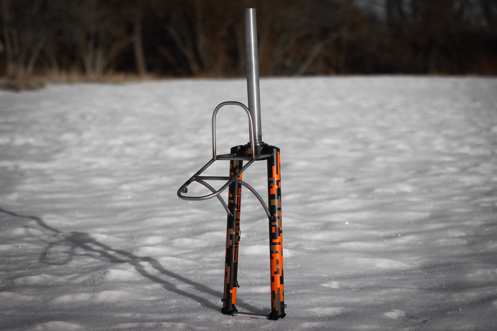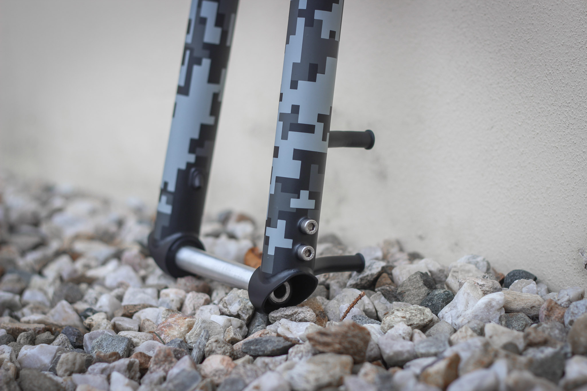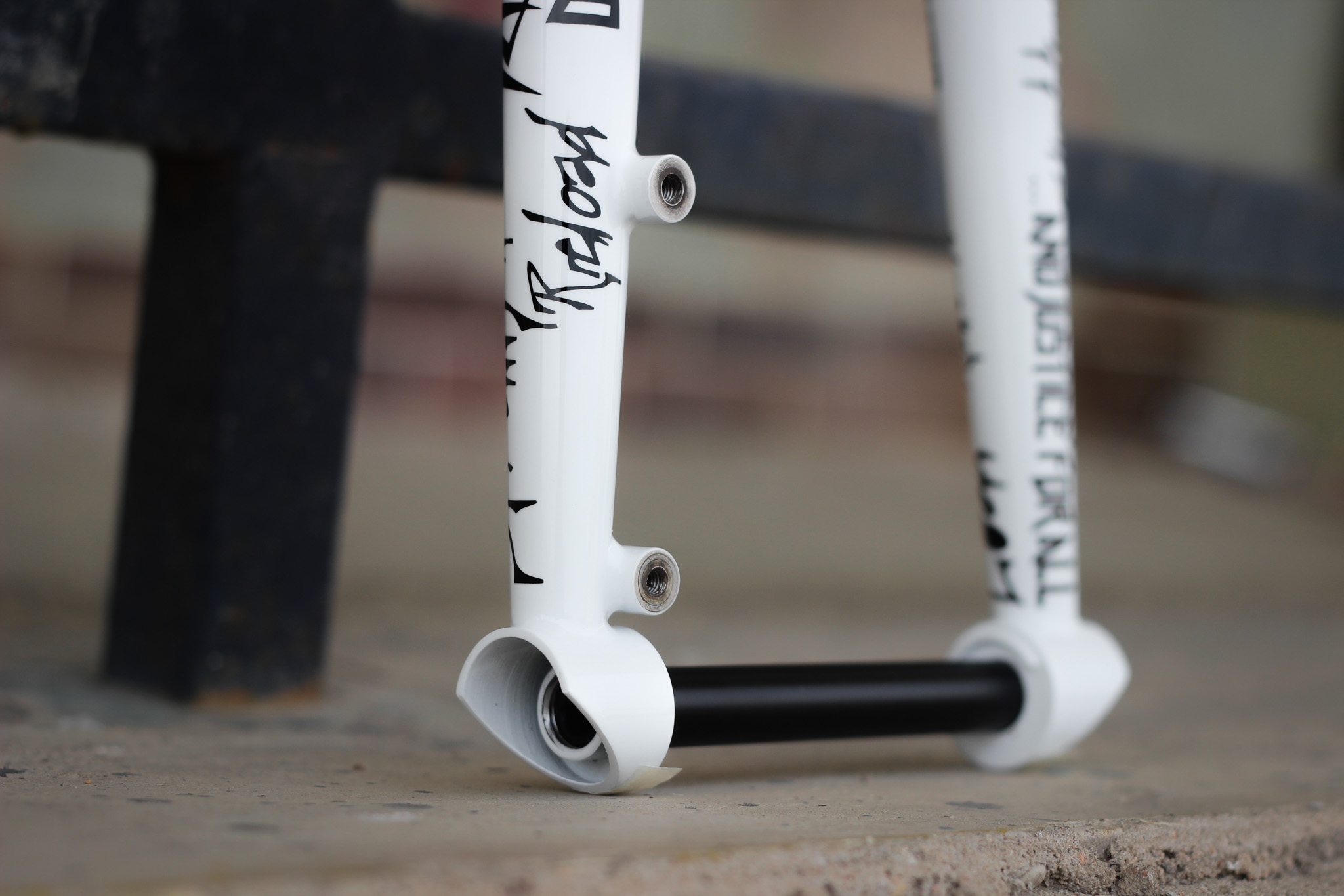 Straight – straight legs from steel SAE4130, diam 30 mm. Optional tire clearance. Max fork axle to crown is 490 mm.