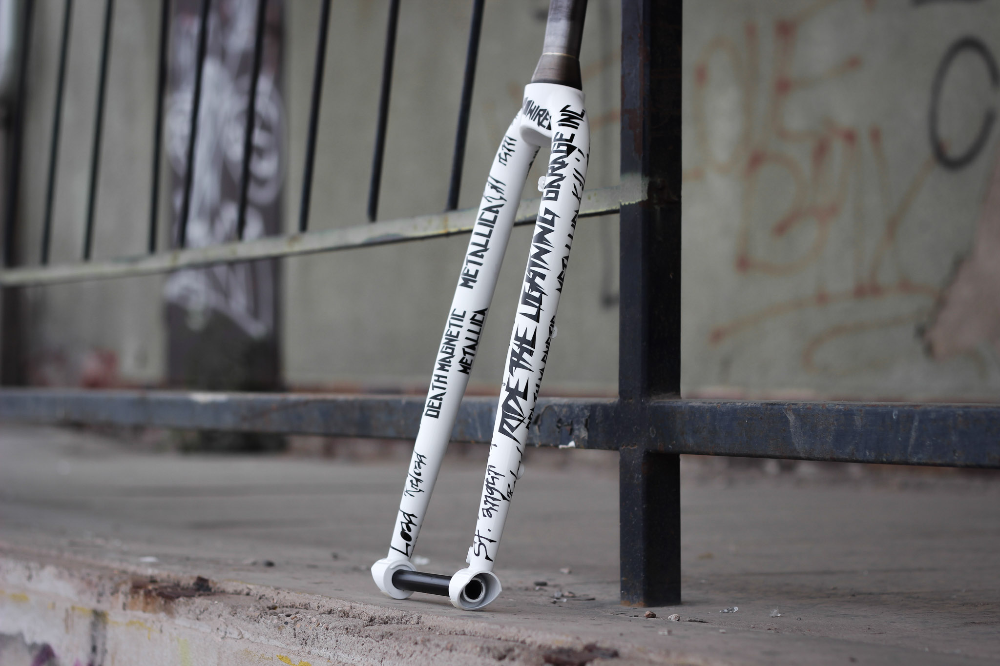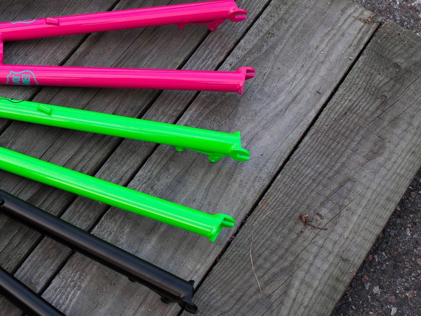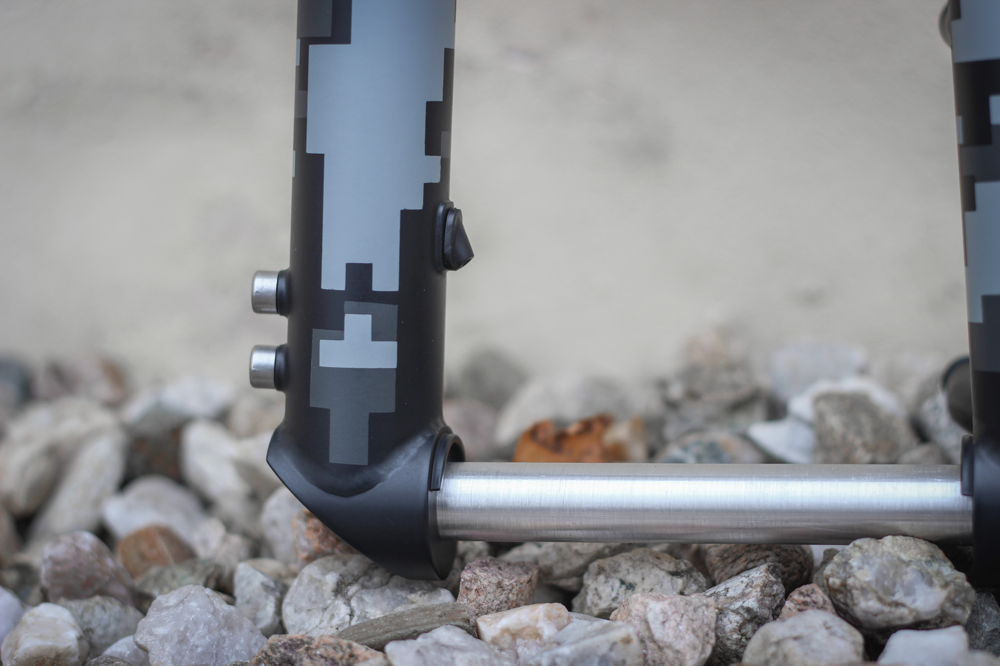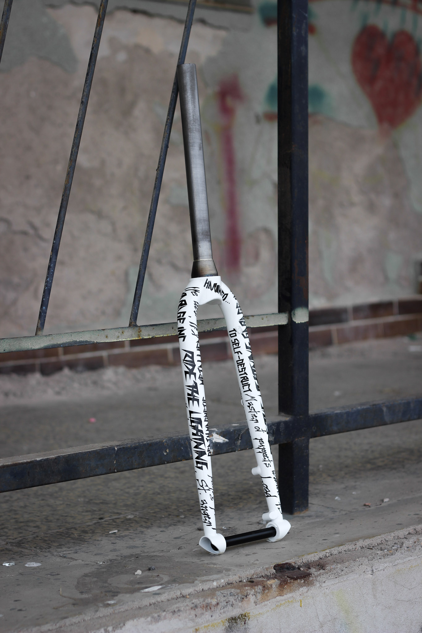 Straight – straight legs from steel SAE4130, diam 30 mm. Optional tire clearance. Max fork axle to crown is 490 mm.