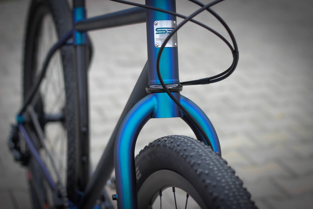 “Unicrown” forks are available from Reynolds 631/853 steel for MTB forks and from SAE4130 CrMo steel for gravel/road forks.