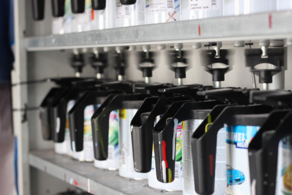 We work with MOBIHEL automotive paints. Mix all them well and prepare any color you need. There are thousands and thousands of combinations.