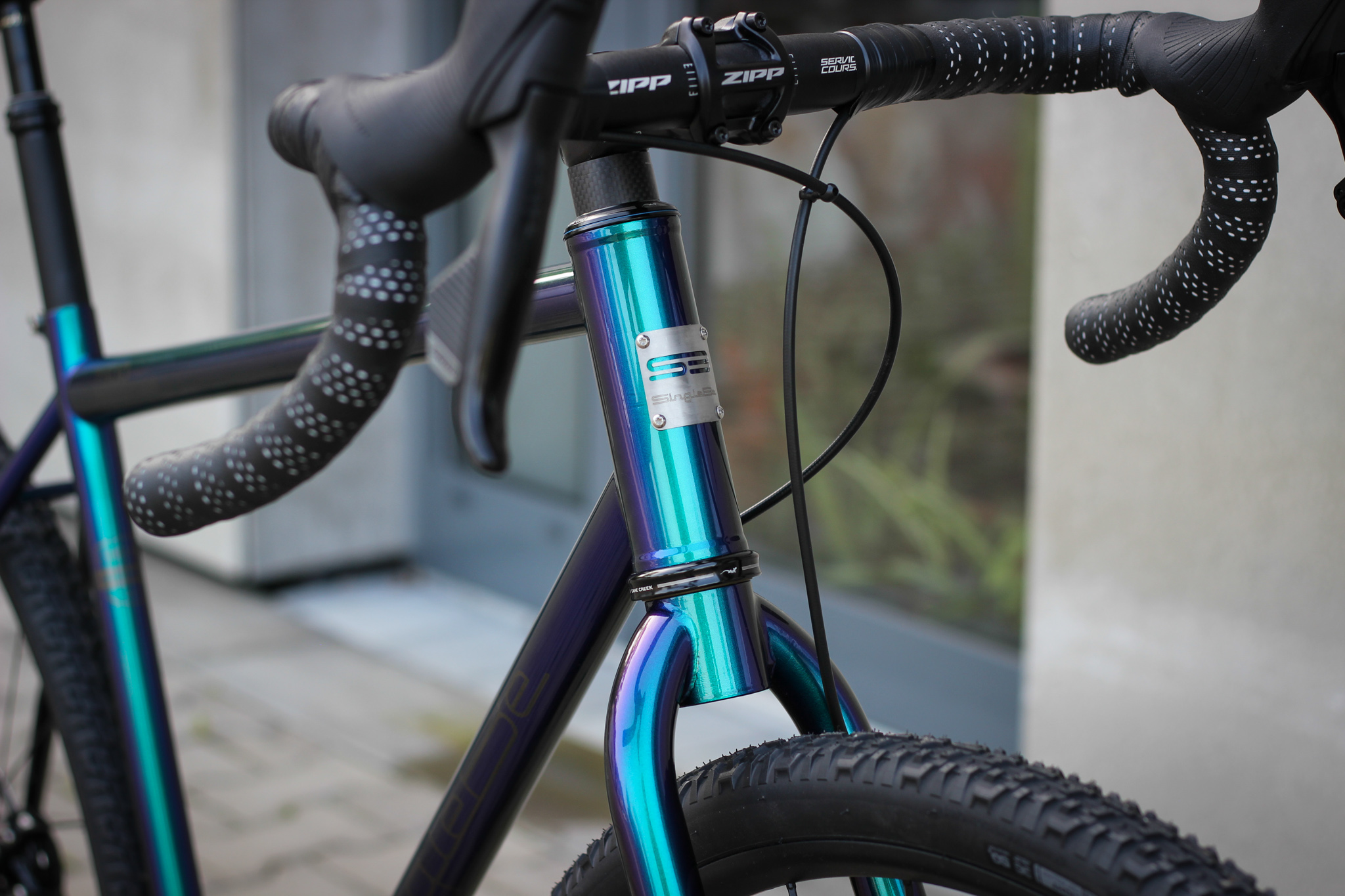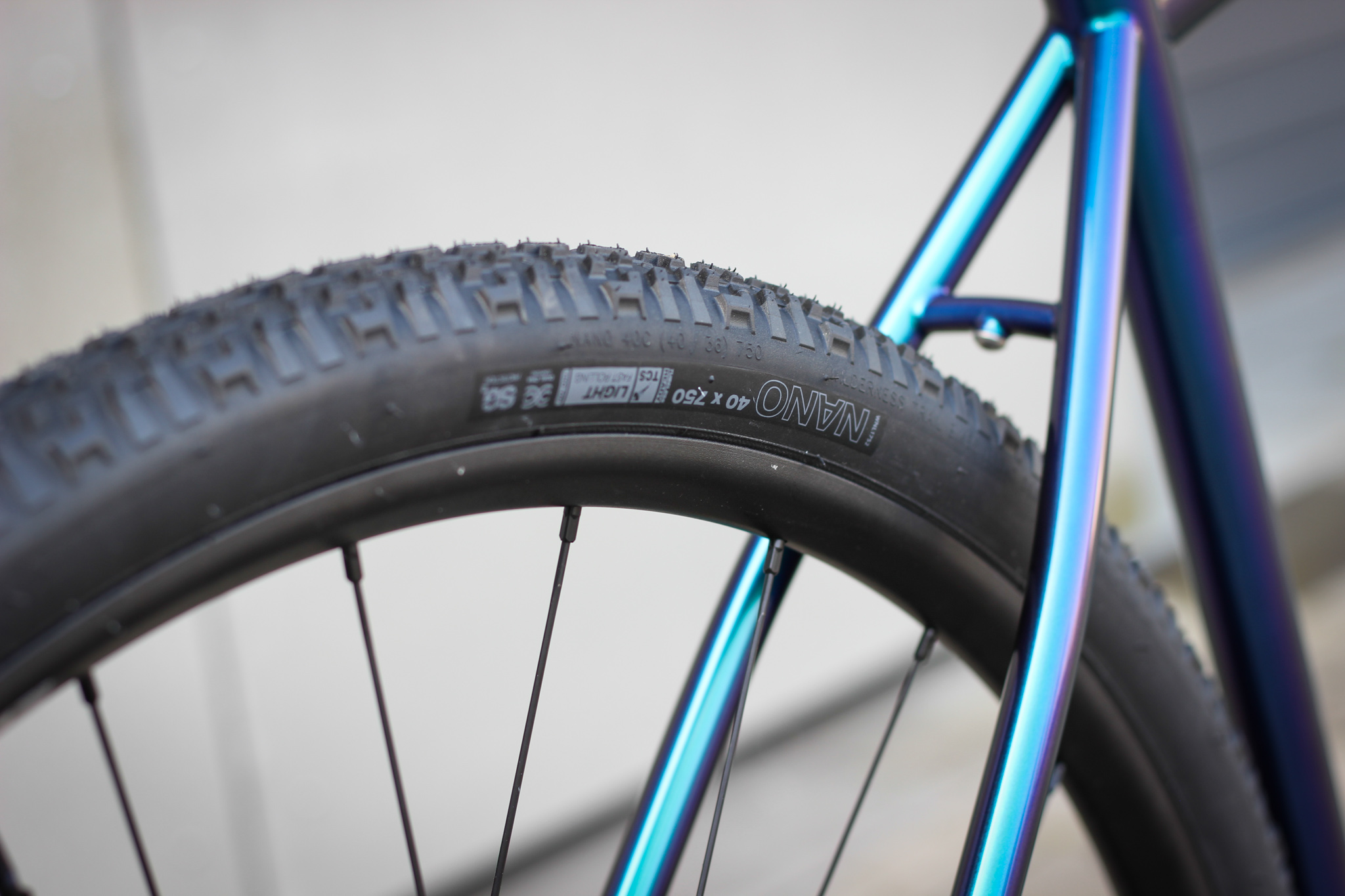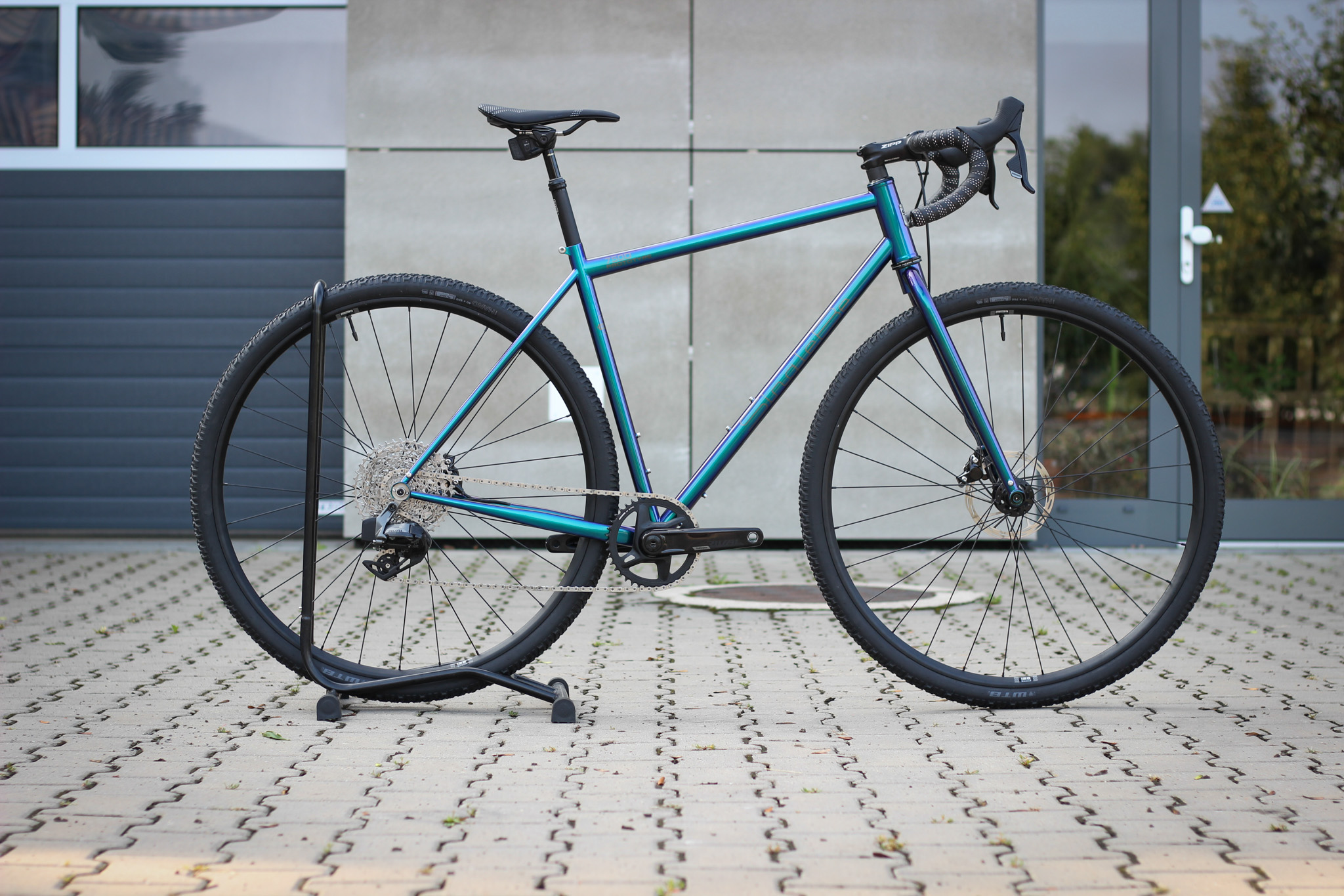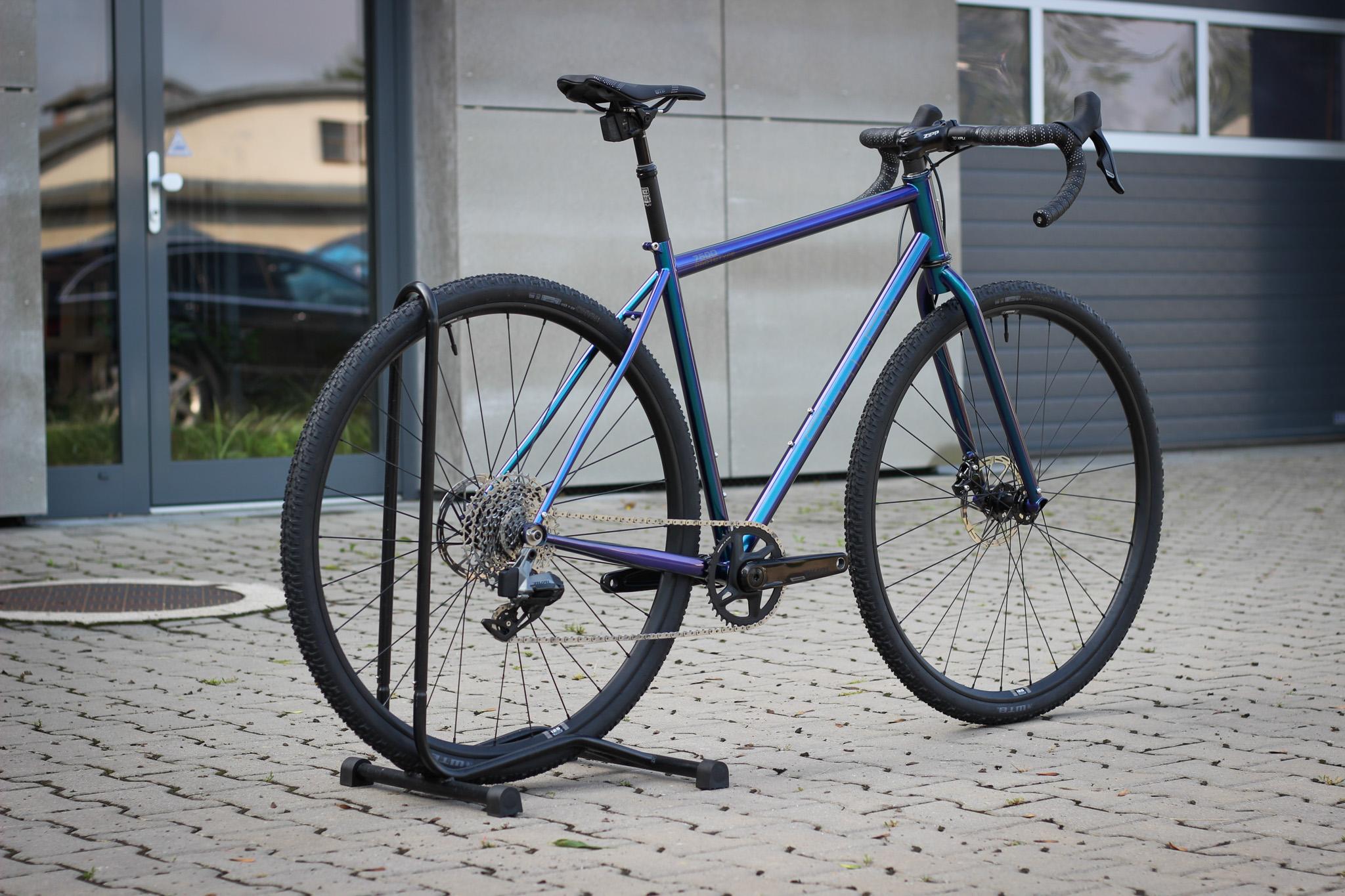SingleBe custom steel gravel bike with new wheel standard 750D developed by WTB.