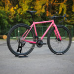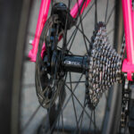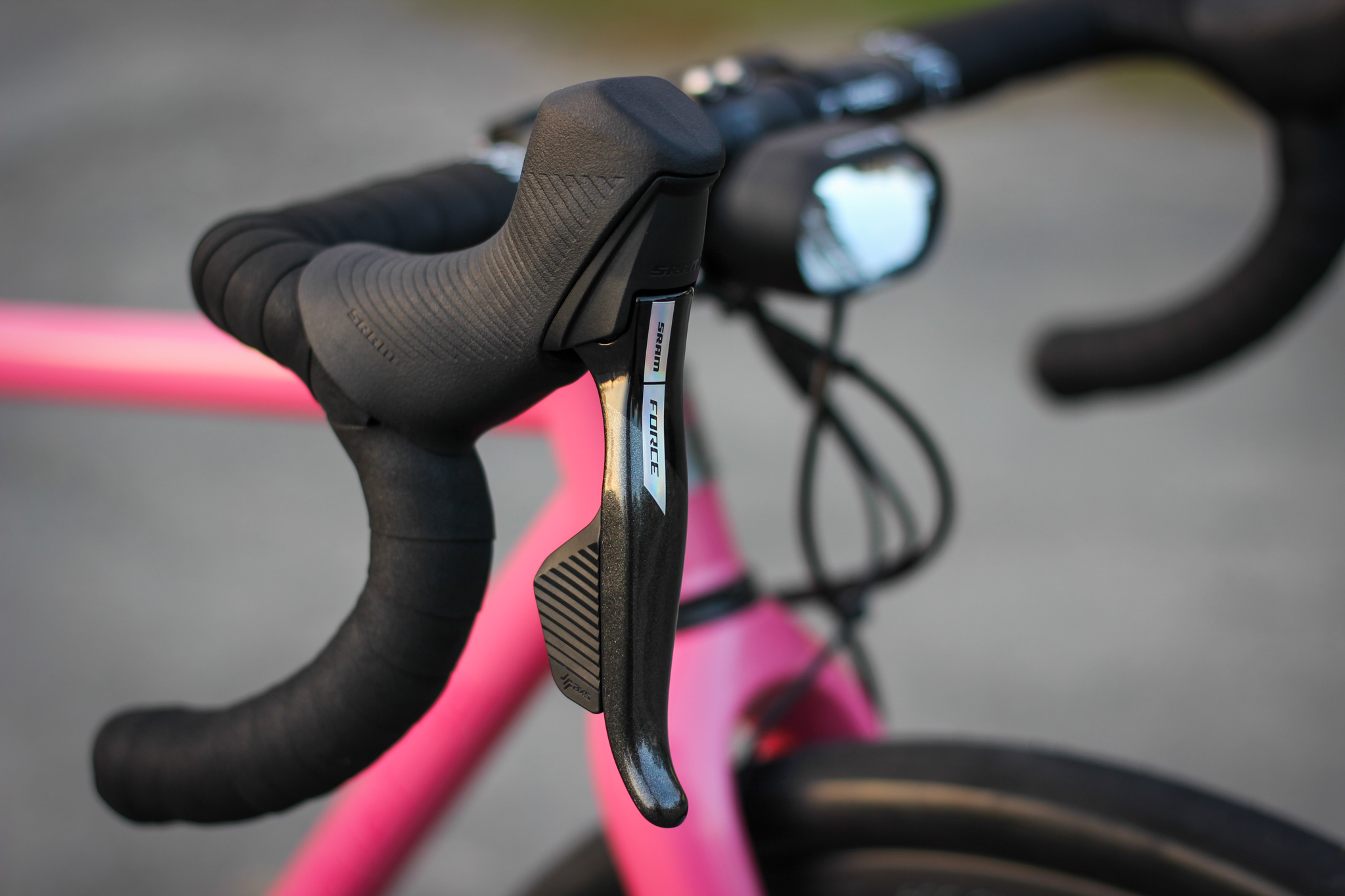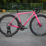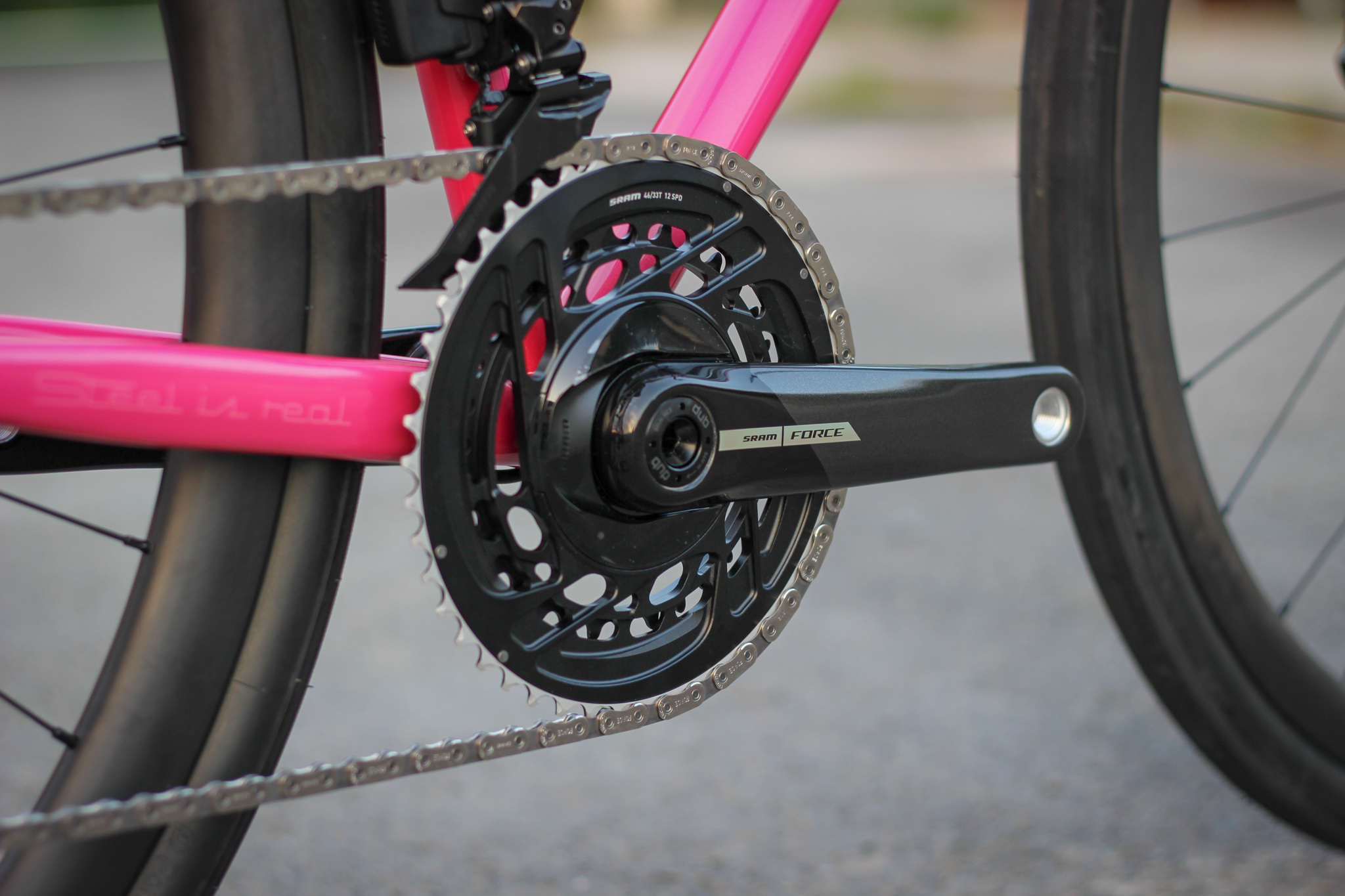 Woman allroad/gravel custom steel bike with Sram FORCE 2×12 AXS groupset.