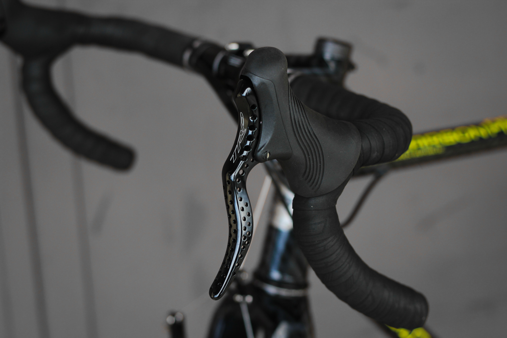 Breaks and left lever comes from TRP breaks. It looks like that most of the competitors choose disk breaks, but in the races more important thing is power and cornering skills.