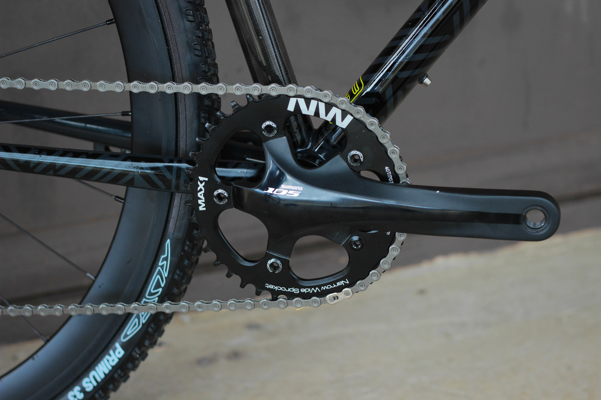 1×11 gears is pretty enough for CX races, I guess. In front there is MAX1 NW 40t 110×5 BCD chainring, rear SRAM cassette 11-32.