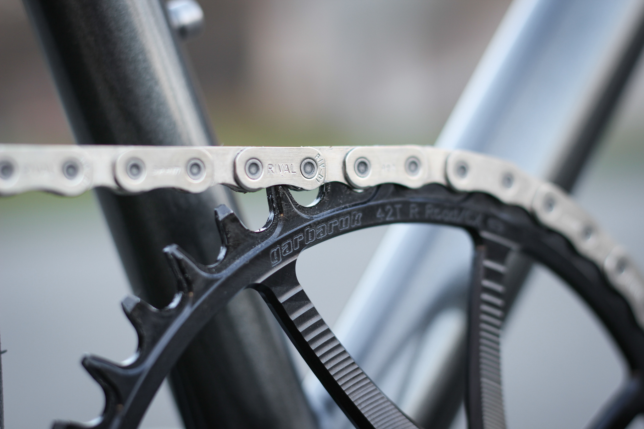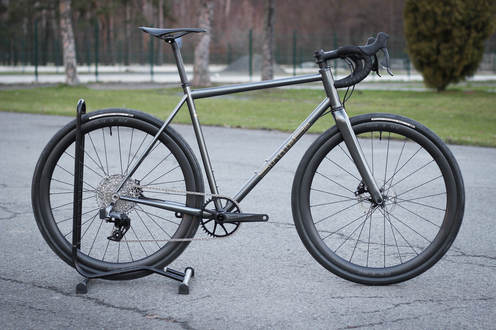 Super fast elegant gravel bike with Sram Rival 1 AXS drive and carbon wheels.