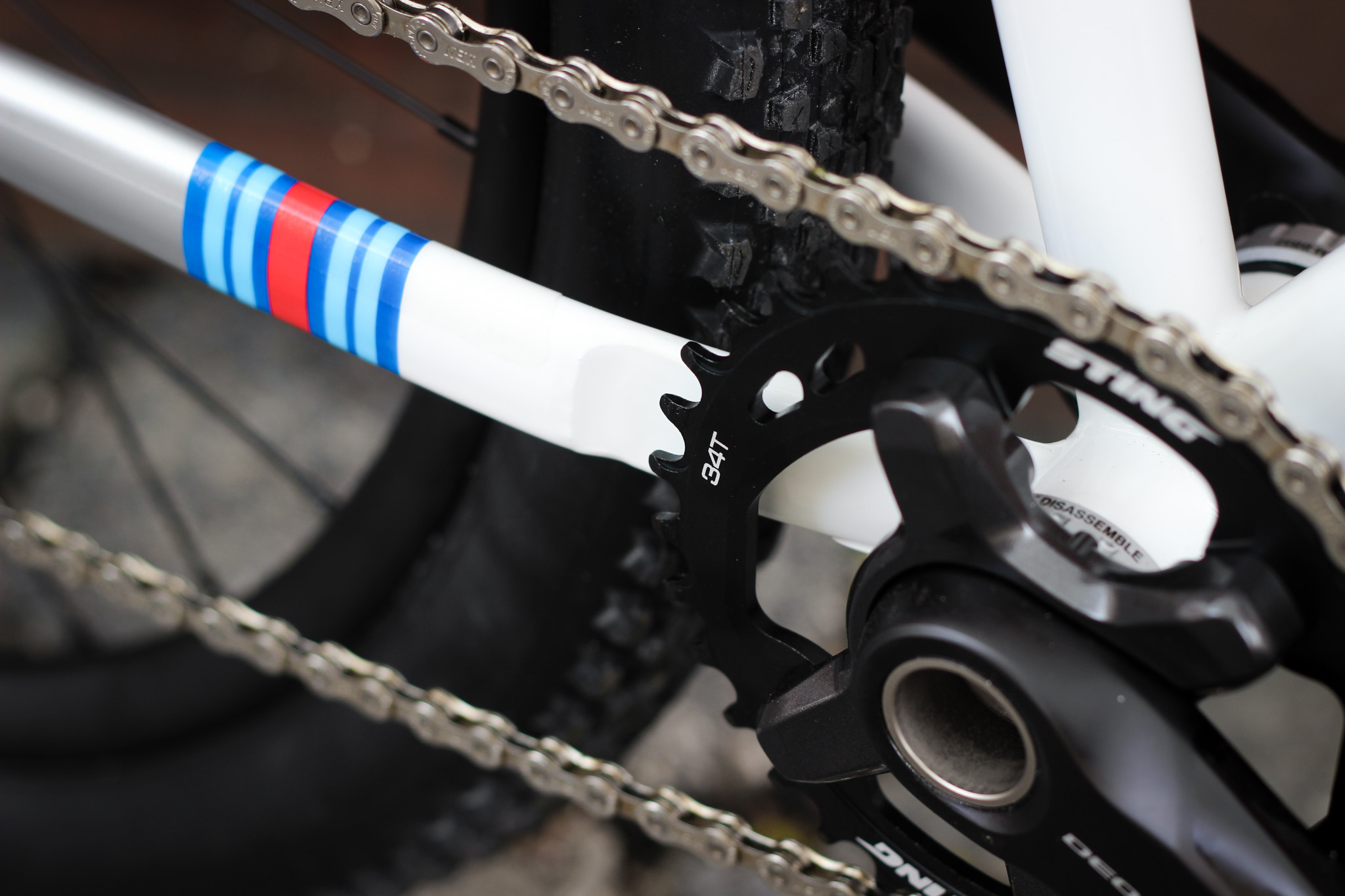 Shimano XT M8000 Crankset together with NarrowWide chainring Sting 34t. Chainring clearance is enough for all the 1 x 10-12 options.