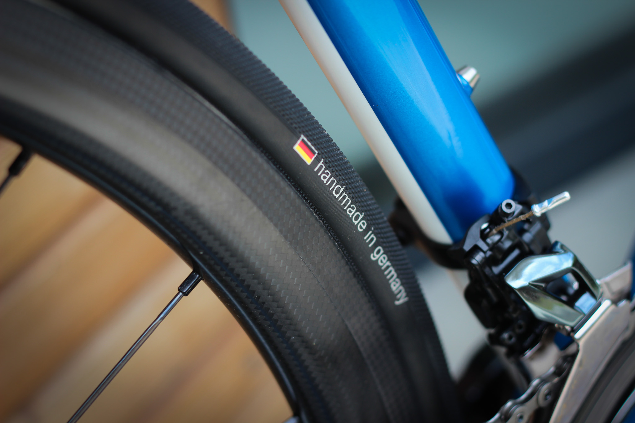 Handmade german tubular tires are sitting on handmade German Lightness build wheels.