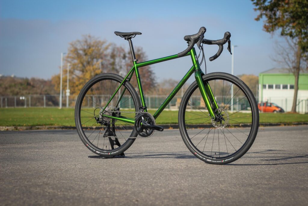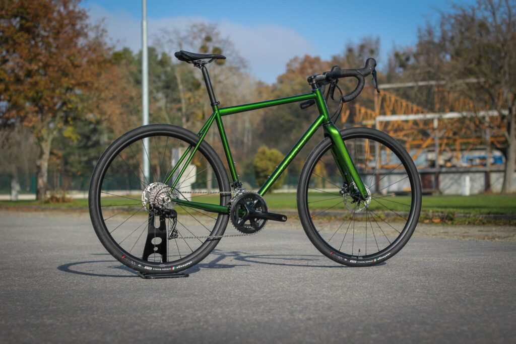 We have one demo bike in the workshop. It is SingleBe Gravel-Allroad with Shimano 105. Size is L/56 (Reach 390, Stack 604) for body height approx. 177 – 190 cm.