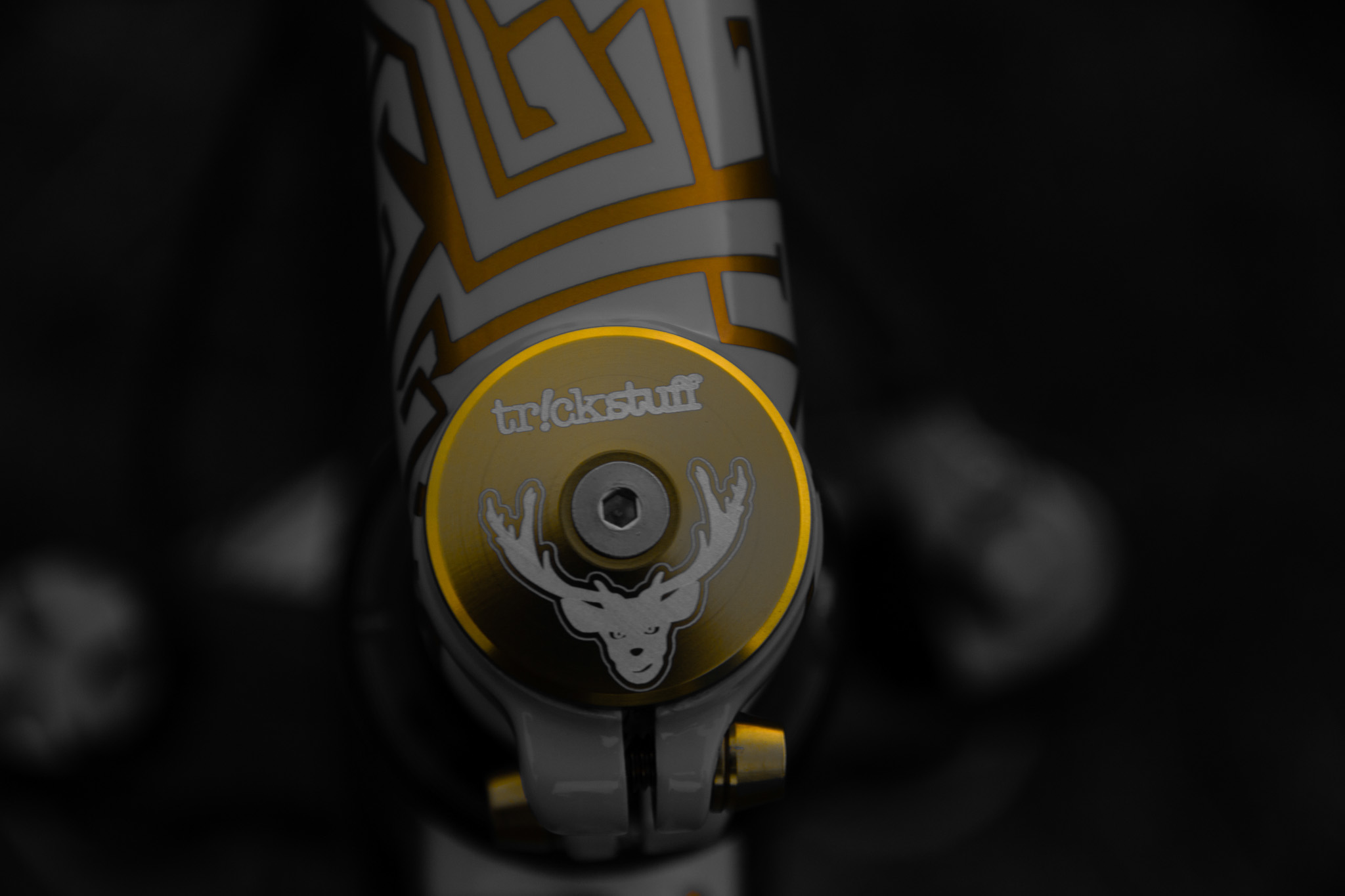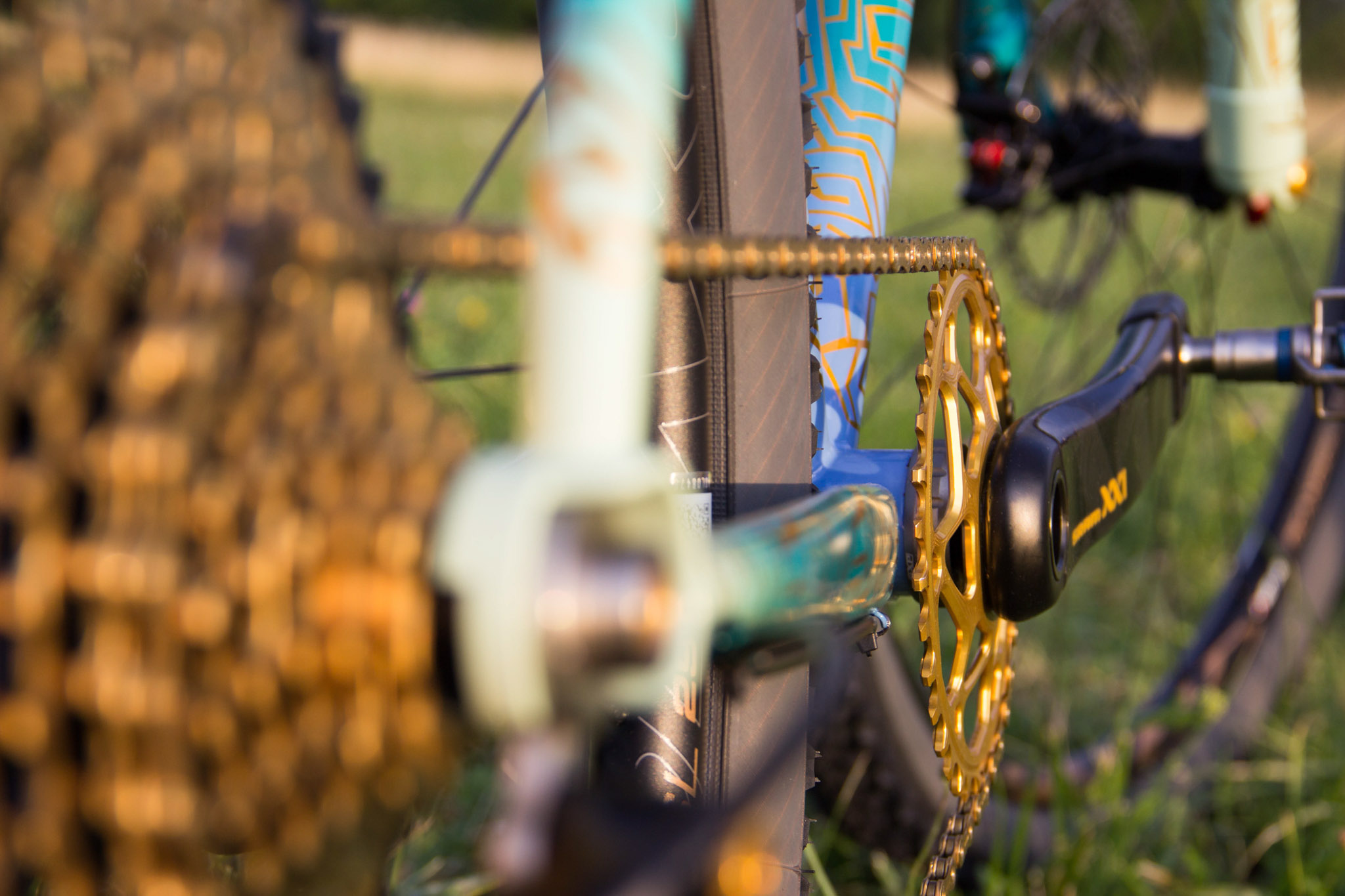 Pro lakování rámu byly použité celkem 4 barvy. Jako první barva zlatá metalická, tedy barva pro vzor na rámu, sedlovce vidlici a představci. Další tři barvy na přání zákazníka lakovány s plynulými přechody.