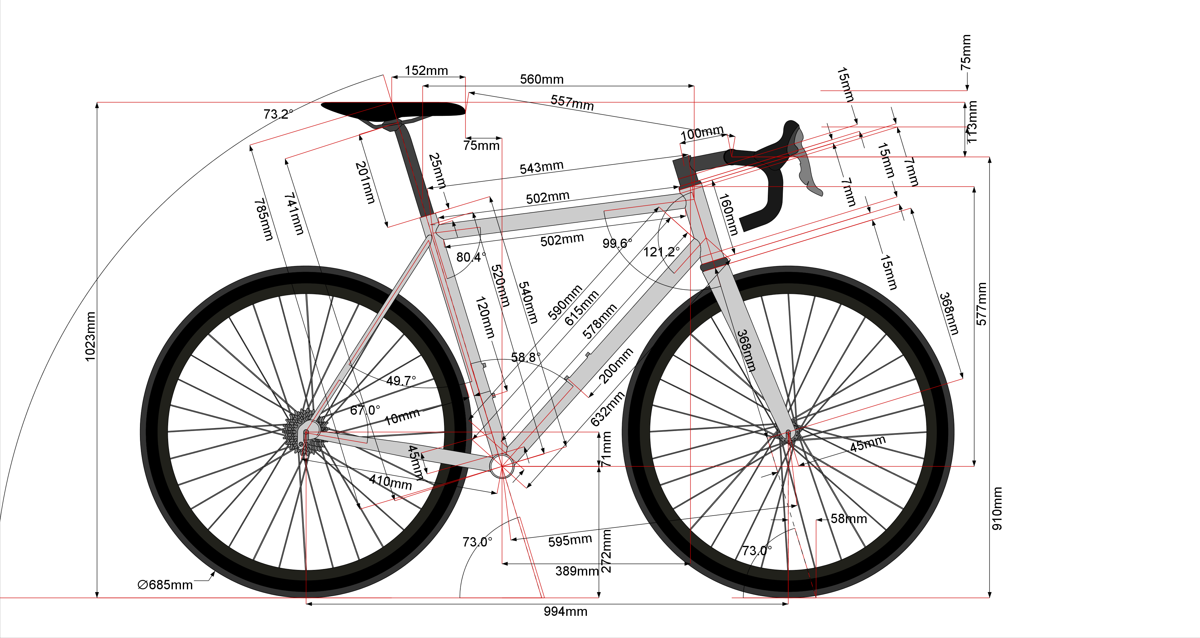 | Horní rámová trubka - aktuální (B) | 543 mm |