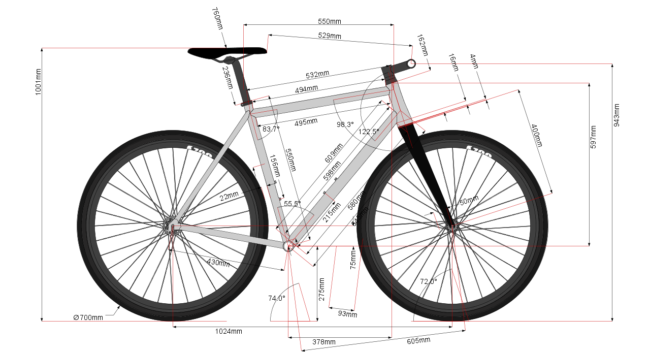 | Horní rámová trubka - aktuální (B) | 532 mm |