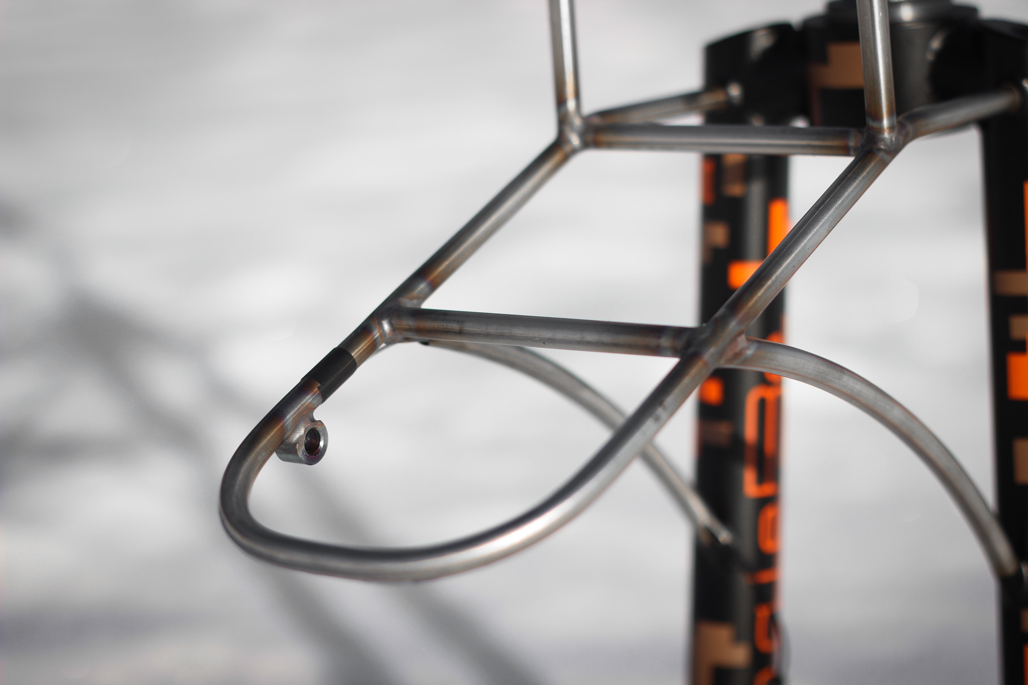 Ocelová vidlice SinglBe s integrovaným nerezovým nosičem a vnitřním vedením od dynamového náboje.