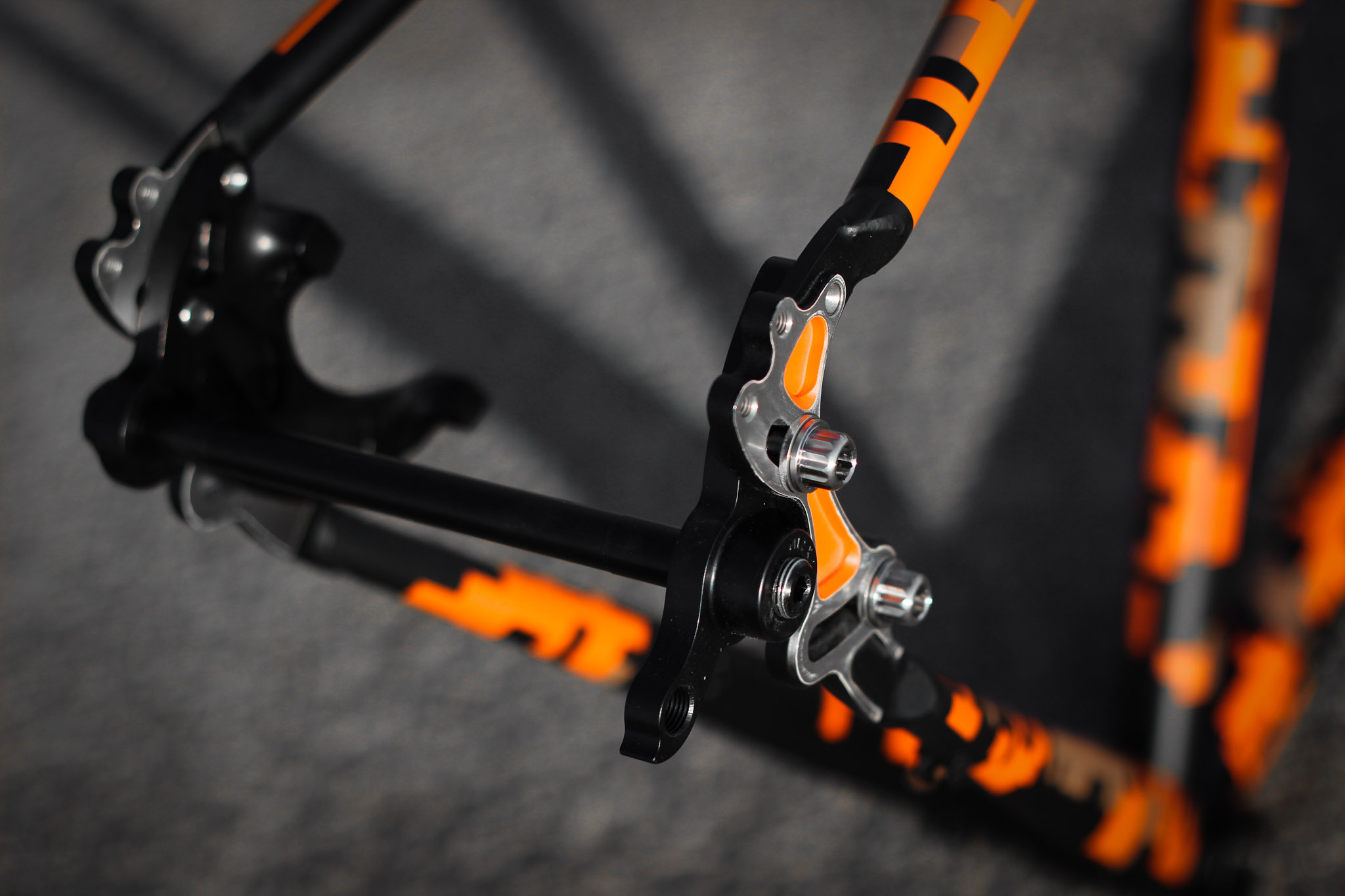 Zadní dopínatelné patky Paragonmachine Rocker umožňují nastavení délky zadní stavby a díky vyměnitelným duralovým vložkám jsou také kompatibilní s různými typy zadních nábojů.