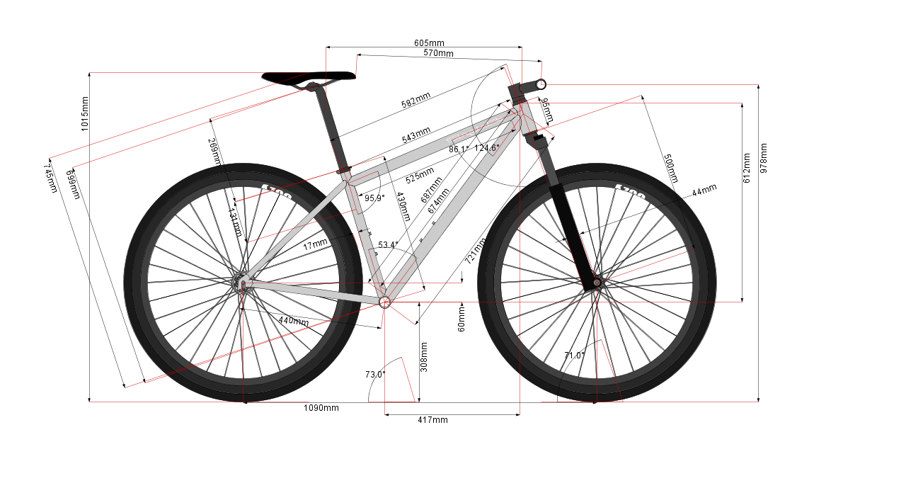| Horní rámová trubka - efektivní (C) | 605 mm |