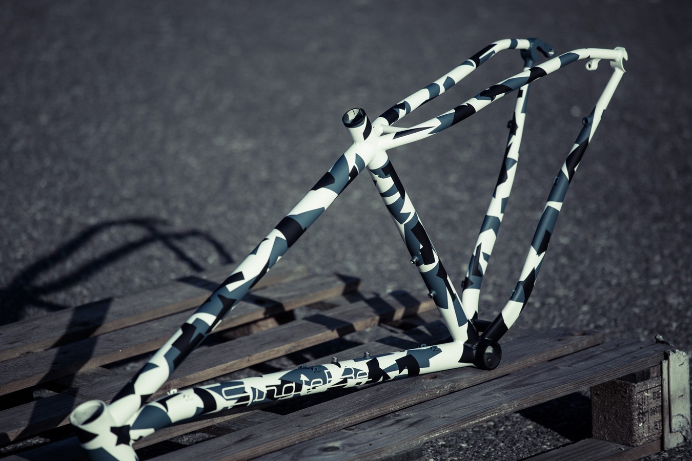 Na rámu jsme si vyzkoušeli velice zajímavý maskáčový design a po 16 hodinách strávených v lakovně je výsledek opravdu unikátní!