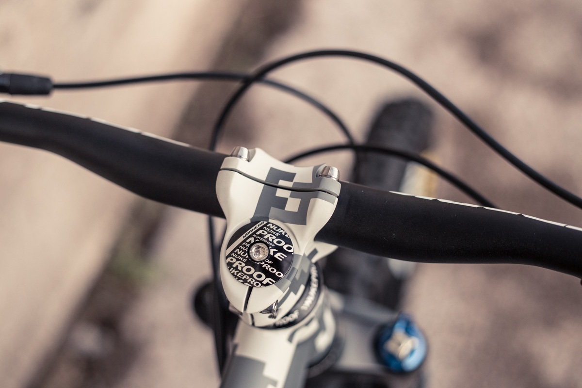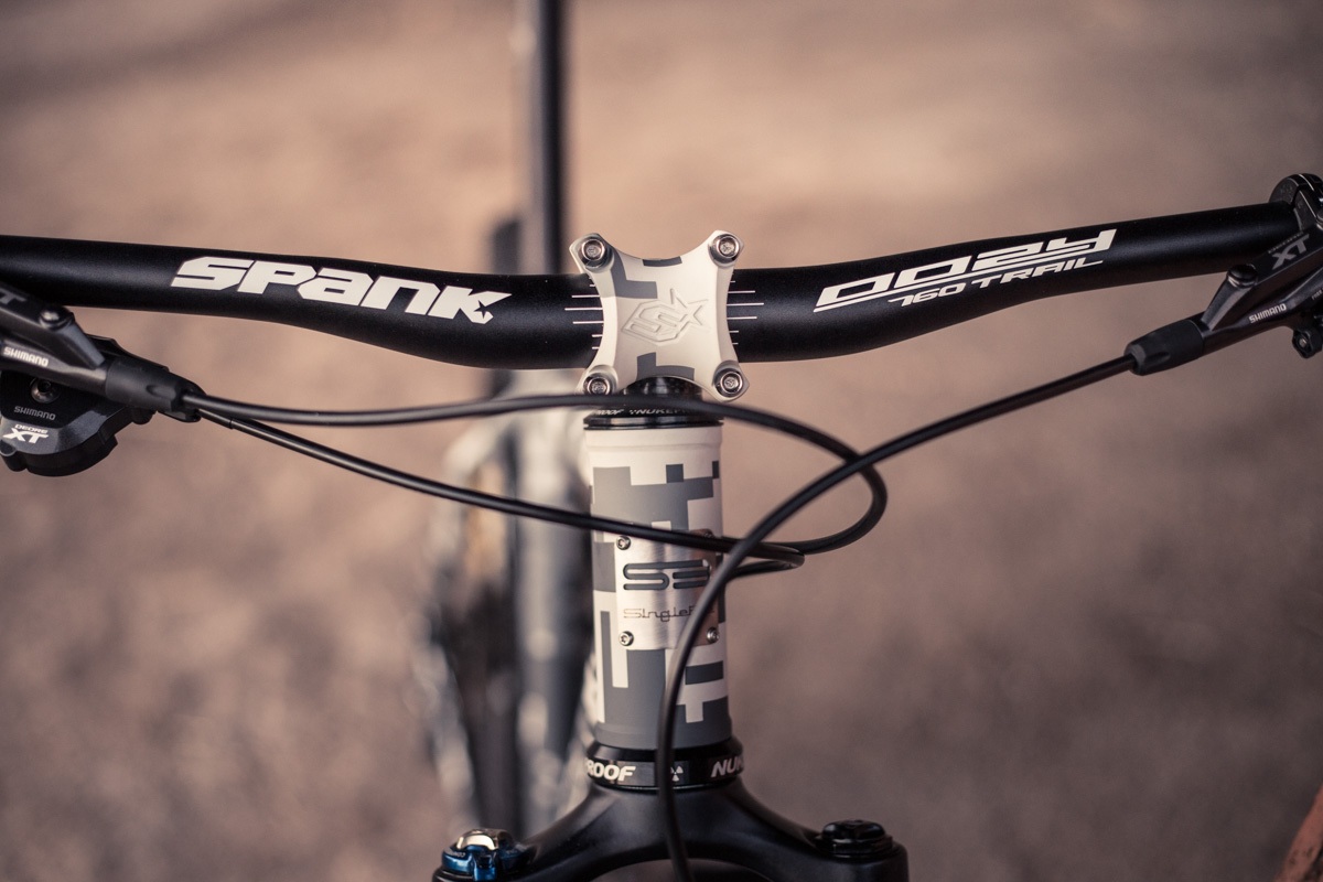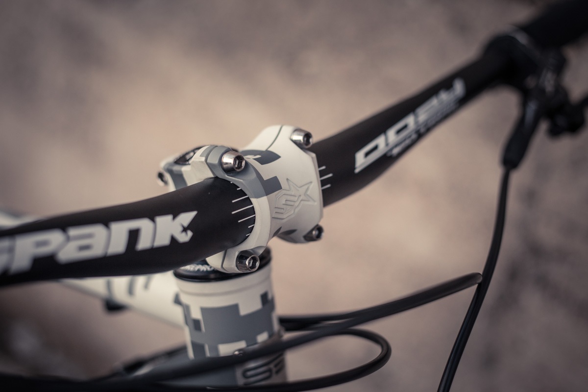 Kokpit v režii Spanku, řidítka Oozy Trail 760 a představec custom lakovaný Spike Race 35 mm.