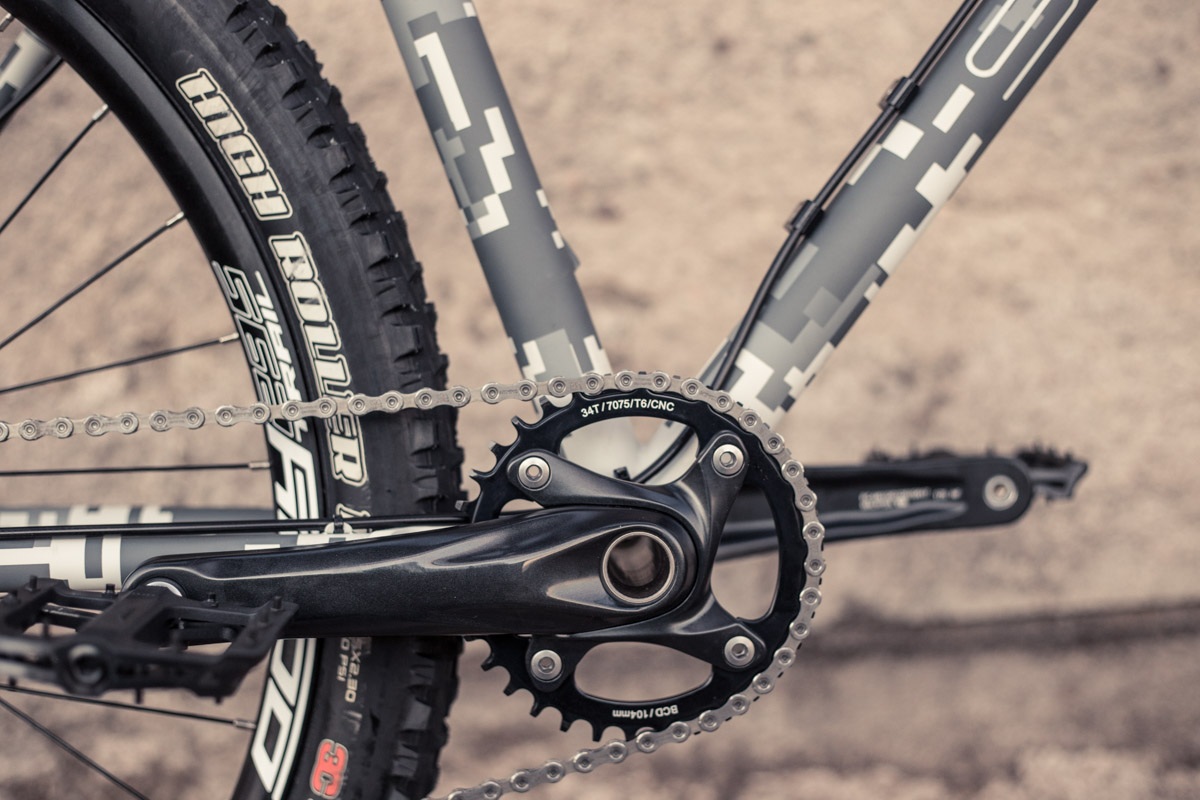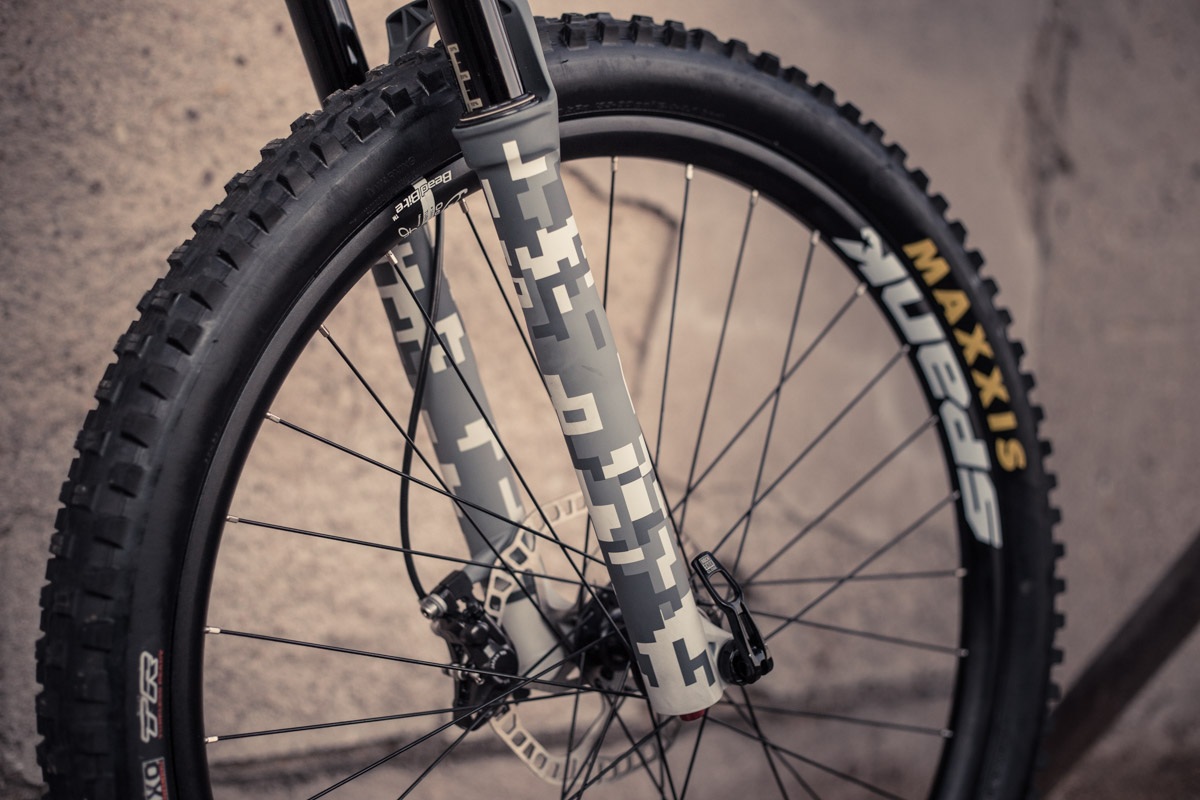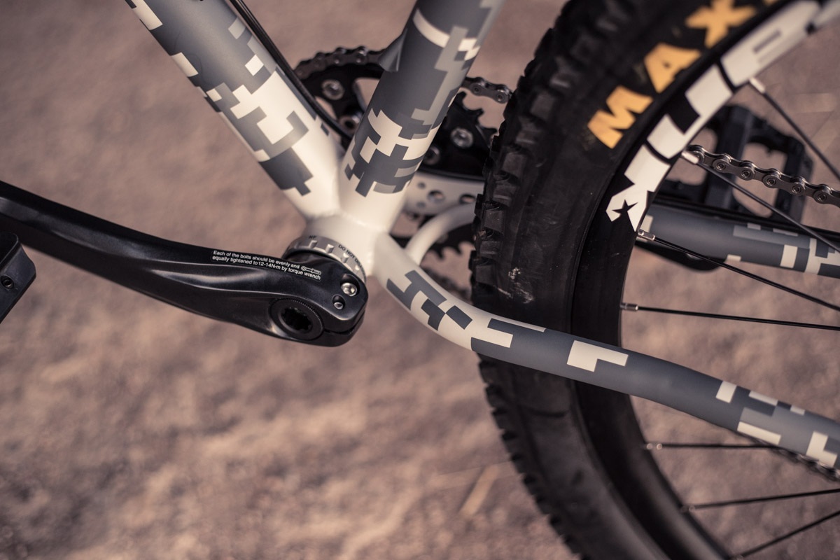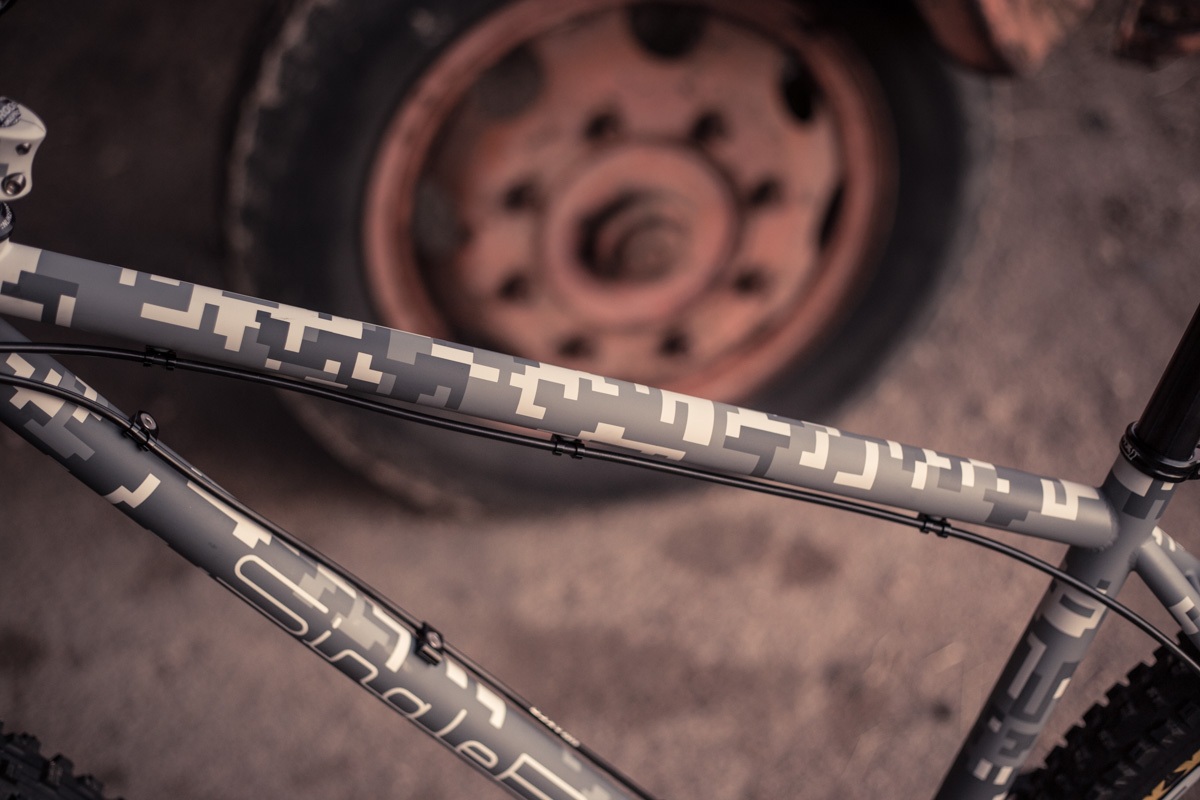 SingleBe Digitalized 650b vznikl jako „show“ bike a měli jsme tak volnou ruku co se týče celé specifikace a hlavně designu. Digitální vzor je proveden v maskáčovém provedení a jedná se o ojedinělý design, který na mnoha kolech nenajdete.