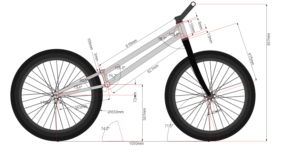 24″ trialové kolo postavené na zakázku pro českého reprezentanta v cyklotrialu Marka Bělovského.