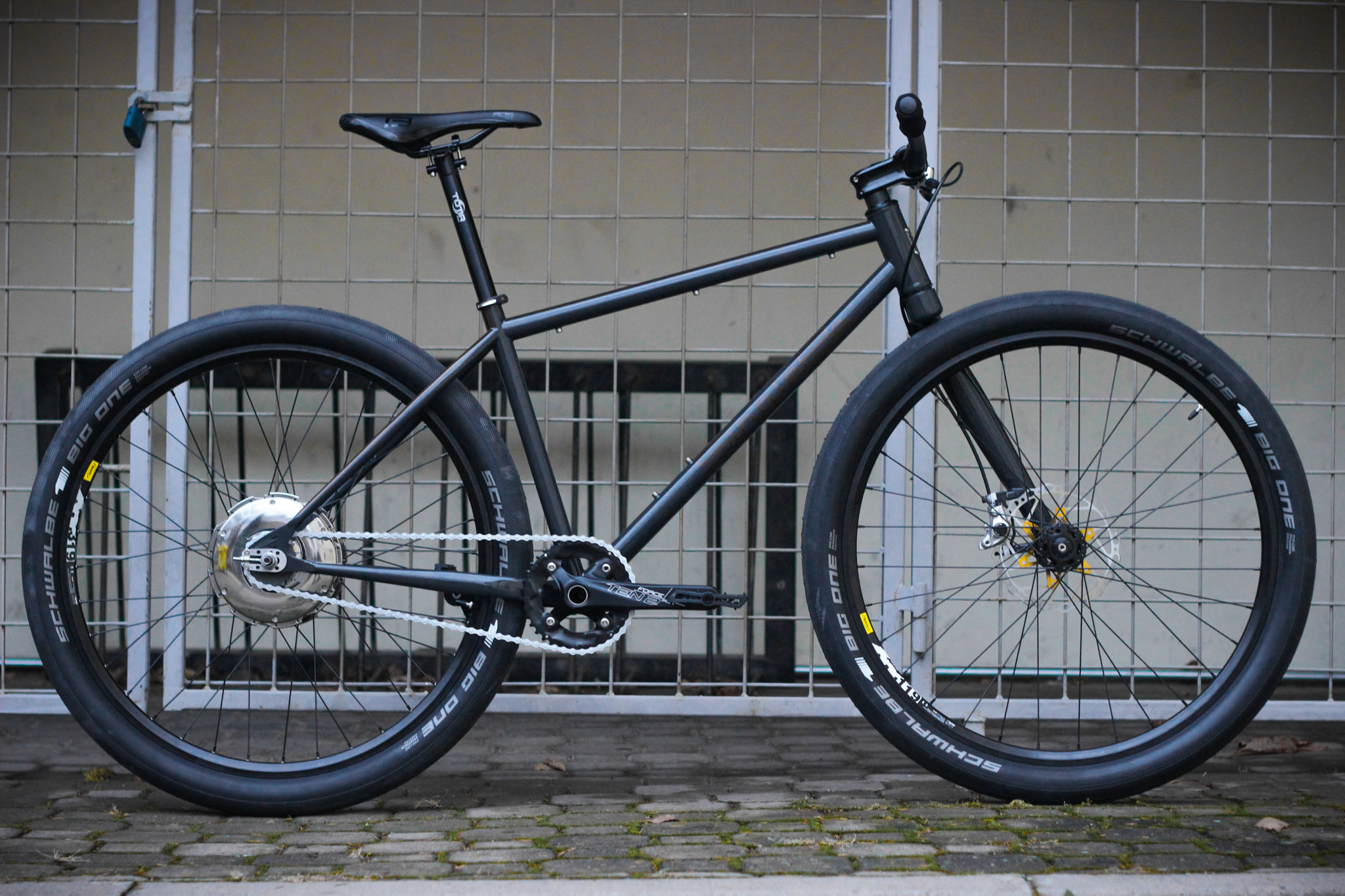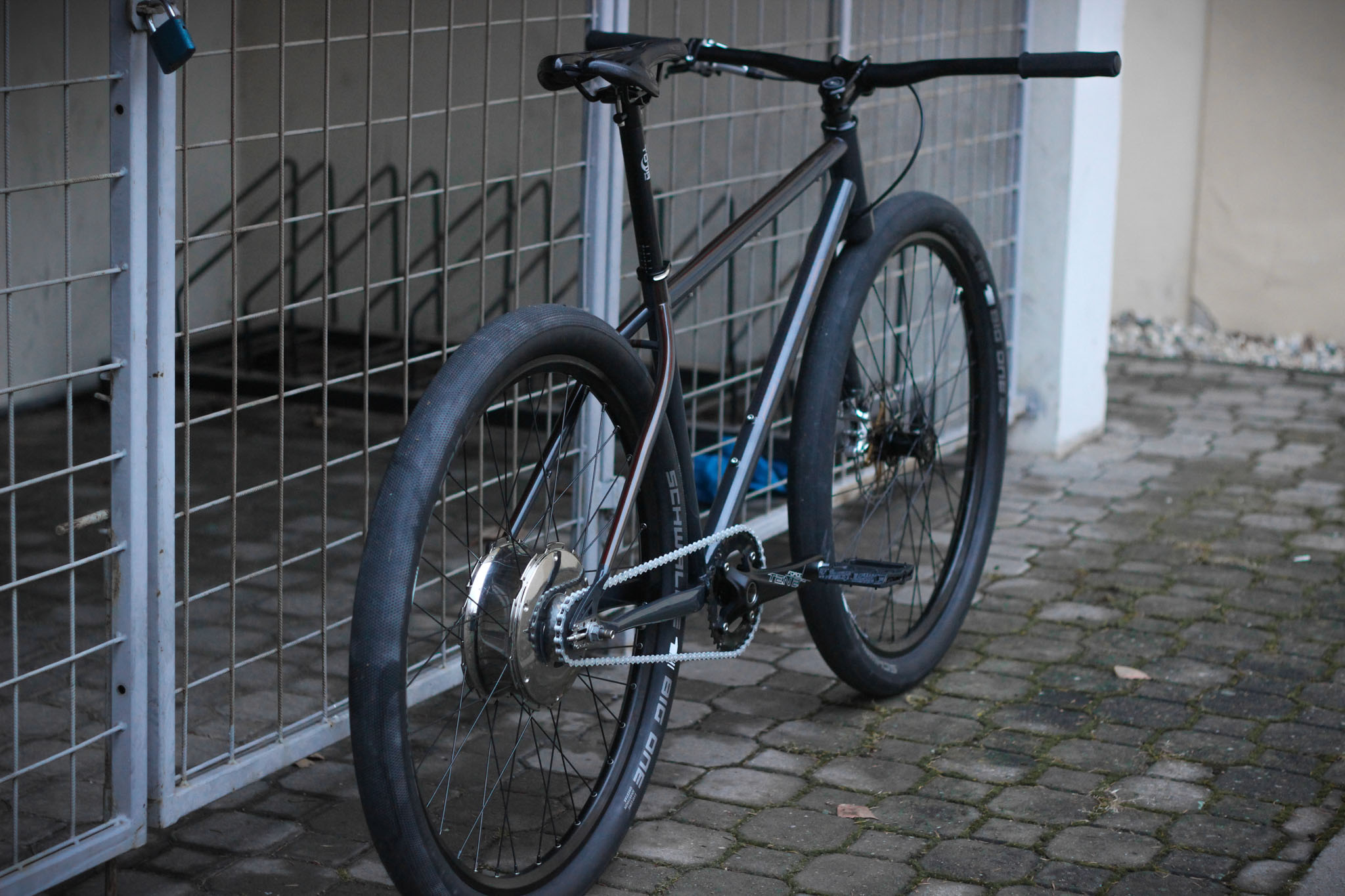 Starší modely zadního náboje Bike+ byl dostupný pouze ve verzi bez kotoučové brzdy a tak je model E-Killer vybavený pouze přední kotoučovou brzdou Shimano XT s kotoučem XON.