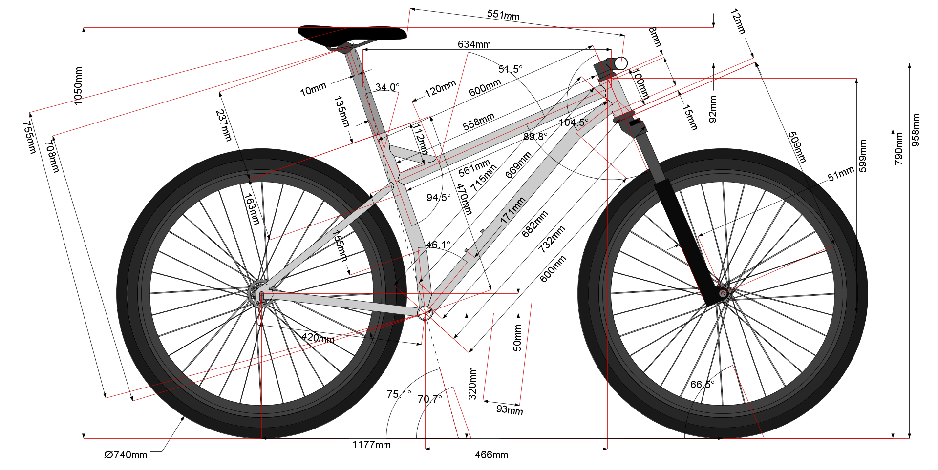 Rám má díky zpevňovací trubičce velice nízko položenou horní rámovou trubku a jezdci tak poskytuje dostatek prostoru pro manévrování v těžkém terénu.