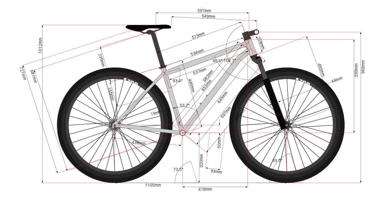 | Horní rámová trubka - aktuální (B) | 573 mm |