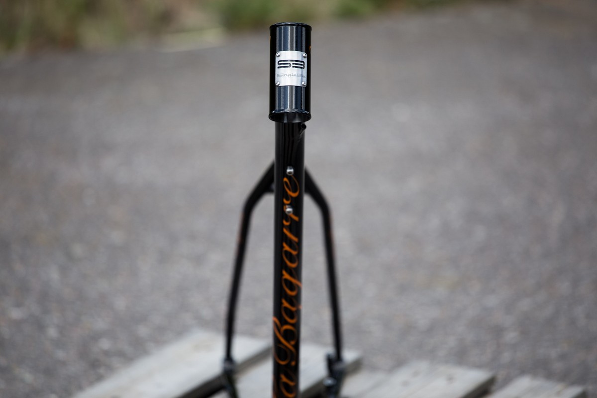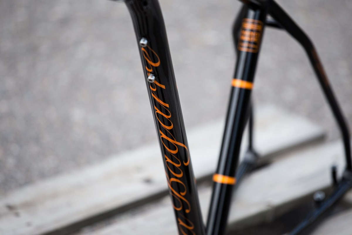 Ryze závodní ocelový rám pro zákazníka Philipa z Francie. Rám je vyroben ze špičkové oceli Reynolds 853, s prohnutou spodní rámovou trubkou, díky které lze docílit co nejnižší hodnoty „stack“ parametru, což závodní chrti jistě ocení.