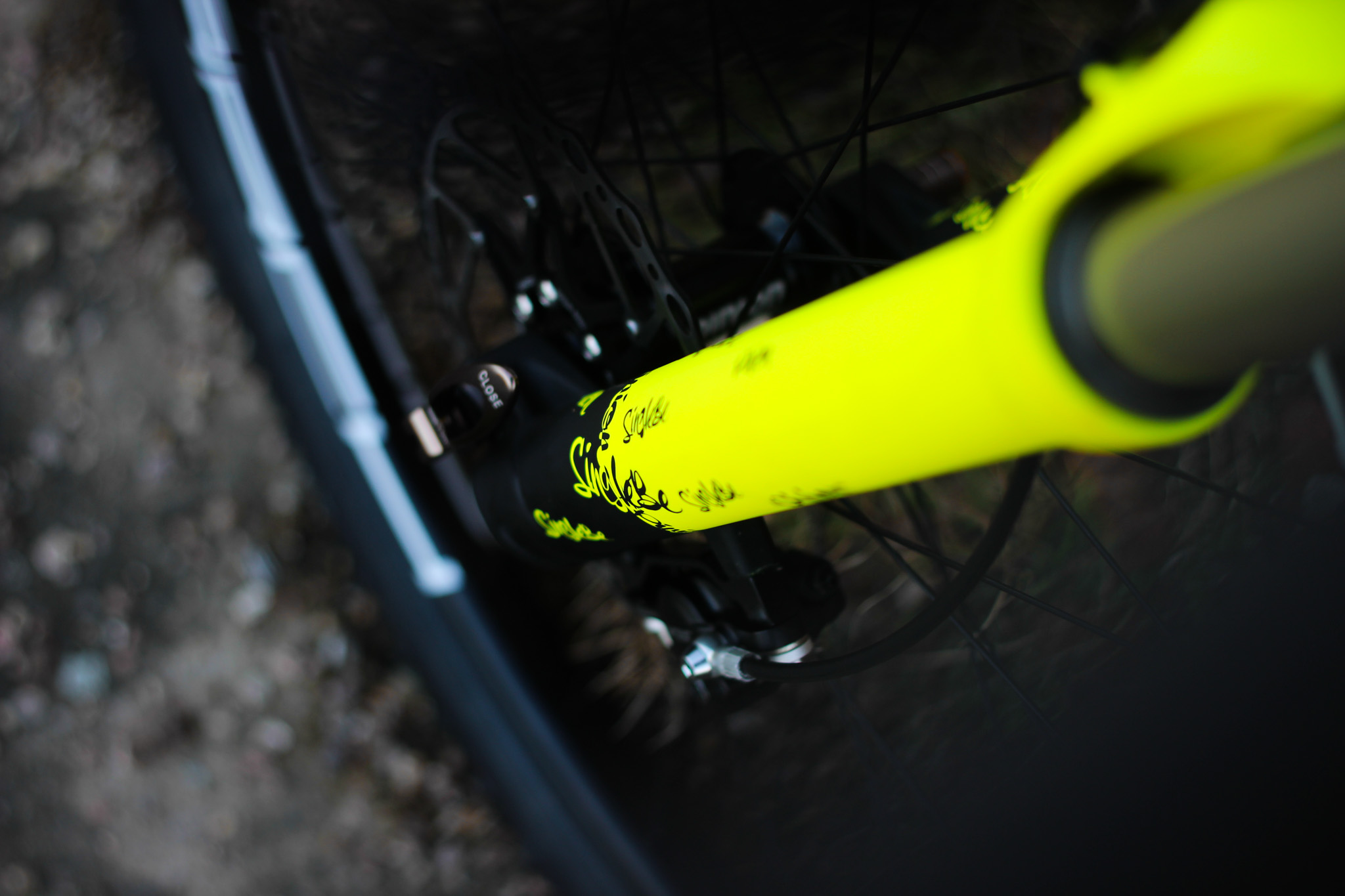 Custom lakovaná vidlice SR Suntgour Auron, předělaná na olejové mazání poskytuje sametový chod.