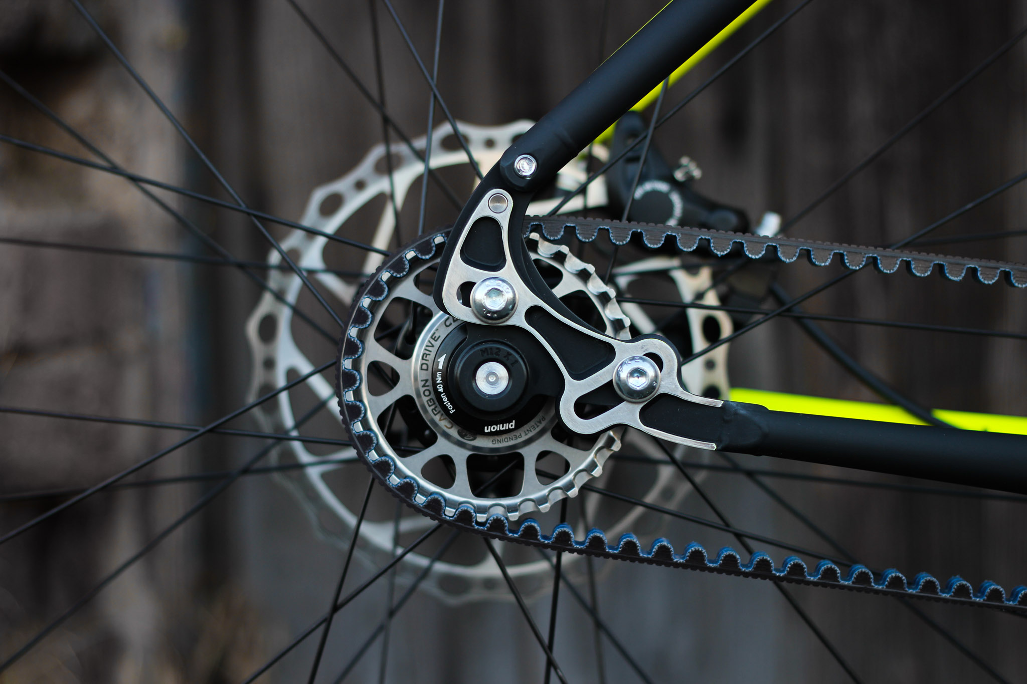 Vpředu převodník Gates 32T, direct mount vyrobený v Pinionu.