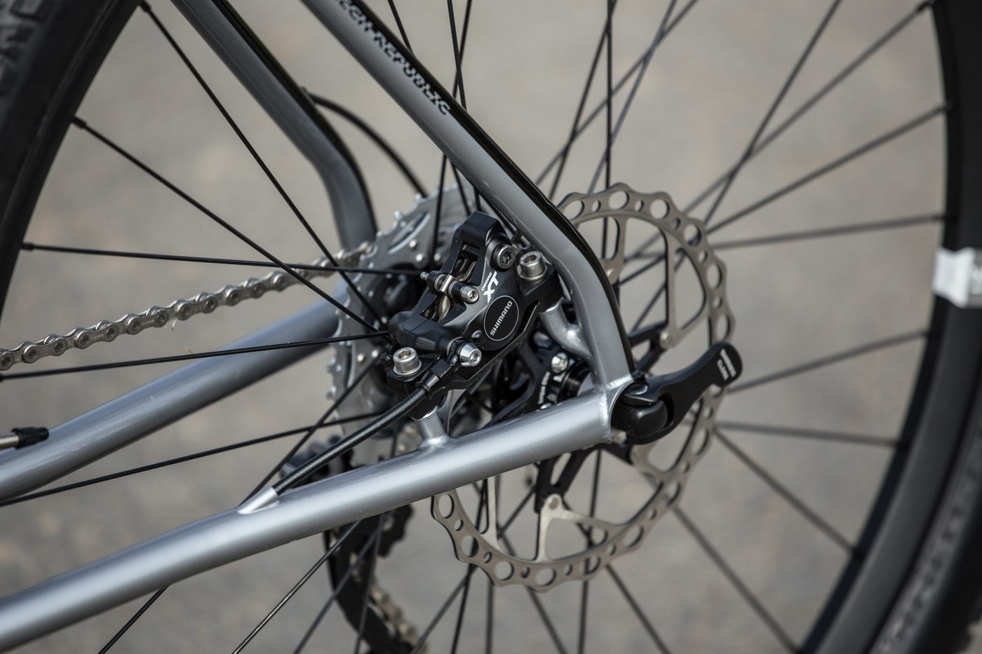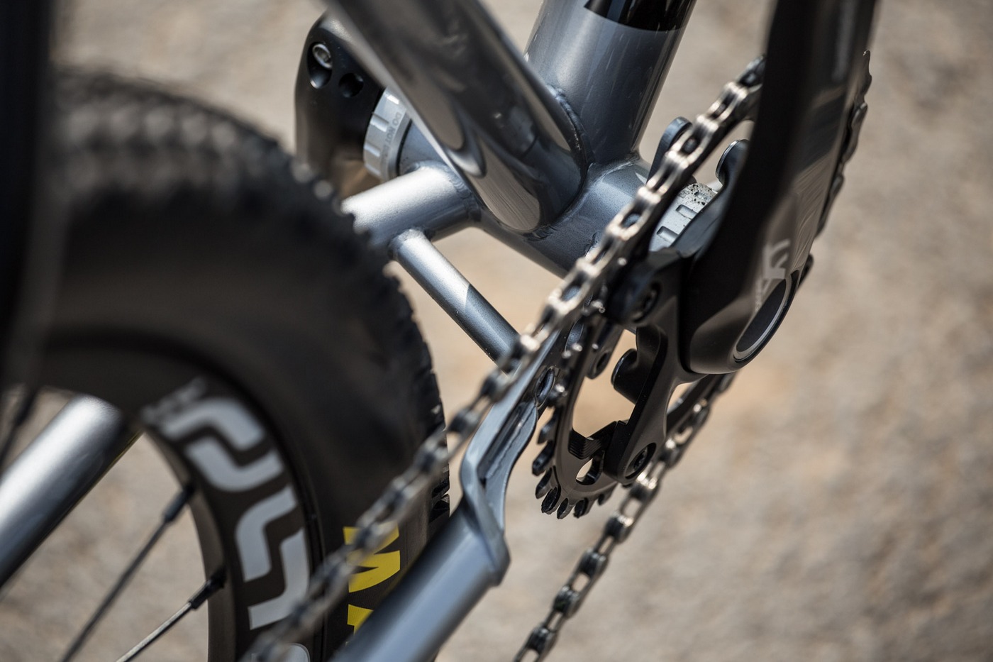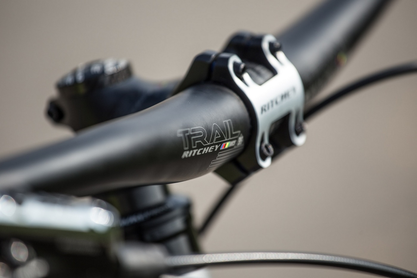 Trailový bike na ježdění zejména po Nejdeckých trailech. Rám s krátkou zadní stavbou, vpředu potuněný Auron s nohama 34mm a zdvihem nastaveným na 150 mm. Pevná kola na ráfcích E13 a ultimátní kombinace plášťů MAXXIS – vpředu Shorty 3C MaxxTerra EXO TR a vzadu bezdušový Ardent Race s ochranou EXO. O pohon se stará kompletně Shimano XT, hazka Shadow Plus a vpředu převodník AbsoluteBlack Oval 34z. Kokpit Ritchey WCS Trail. Každý sjezd si užijete díky teleskopické sedlovce RS Reverb Stealth.