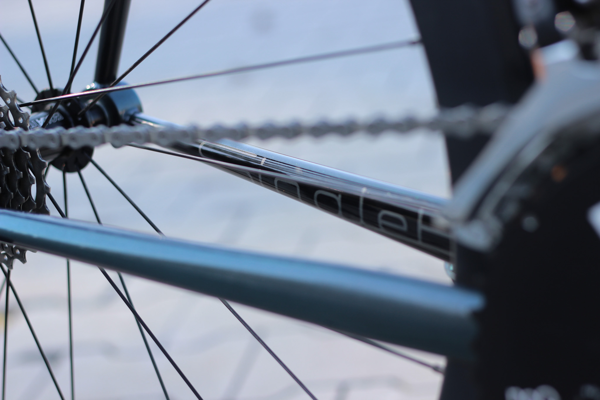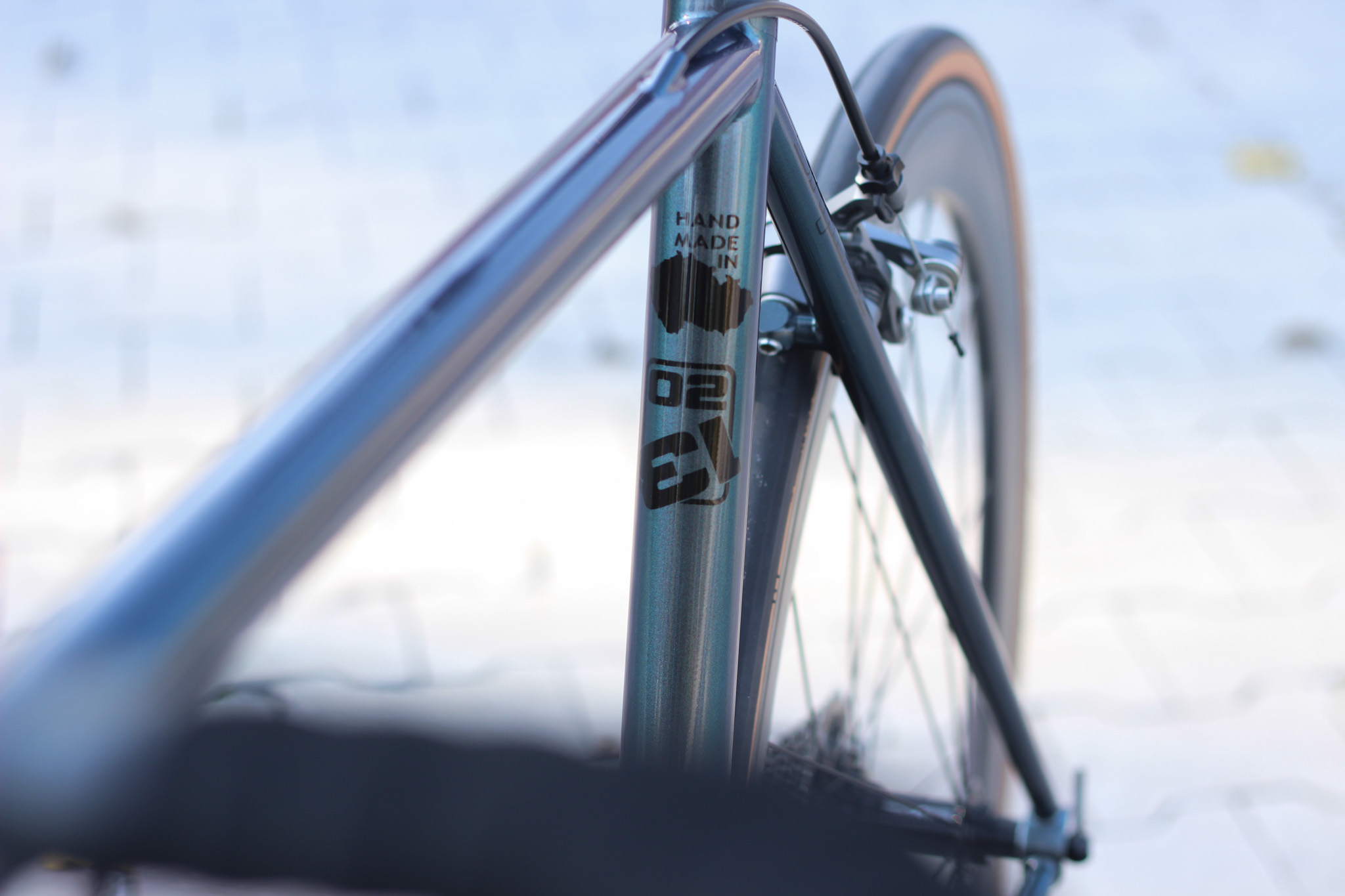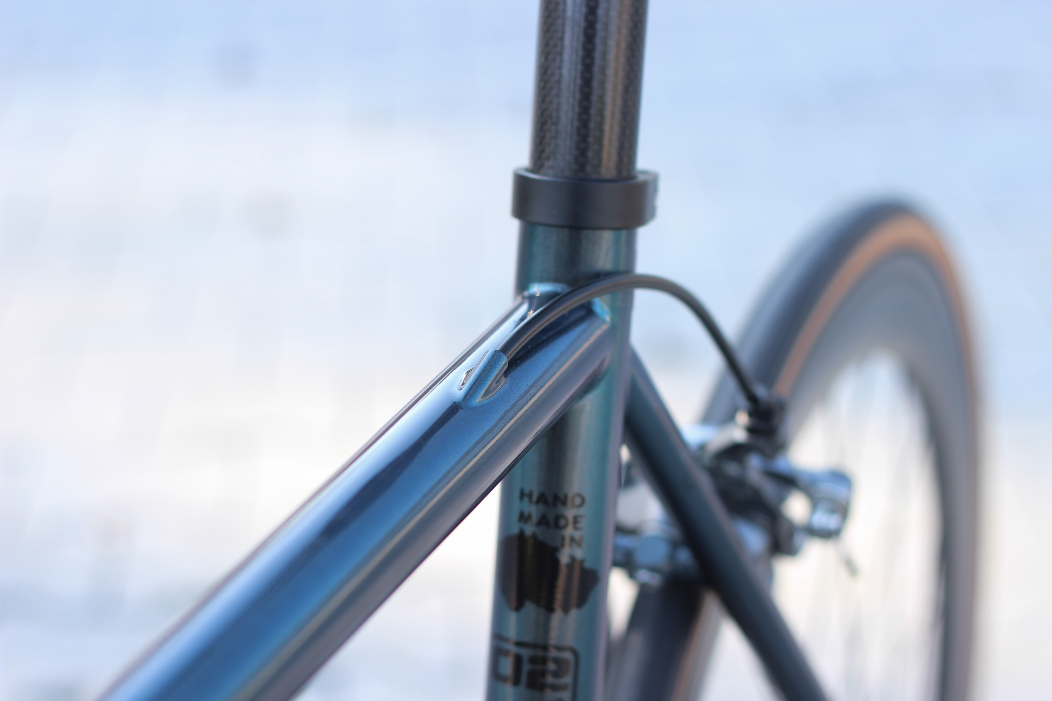 Krom standartního štítku SingleBe si zákazník také přál vlastní logo lakované na sedlové trubce ocelového rámu.