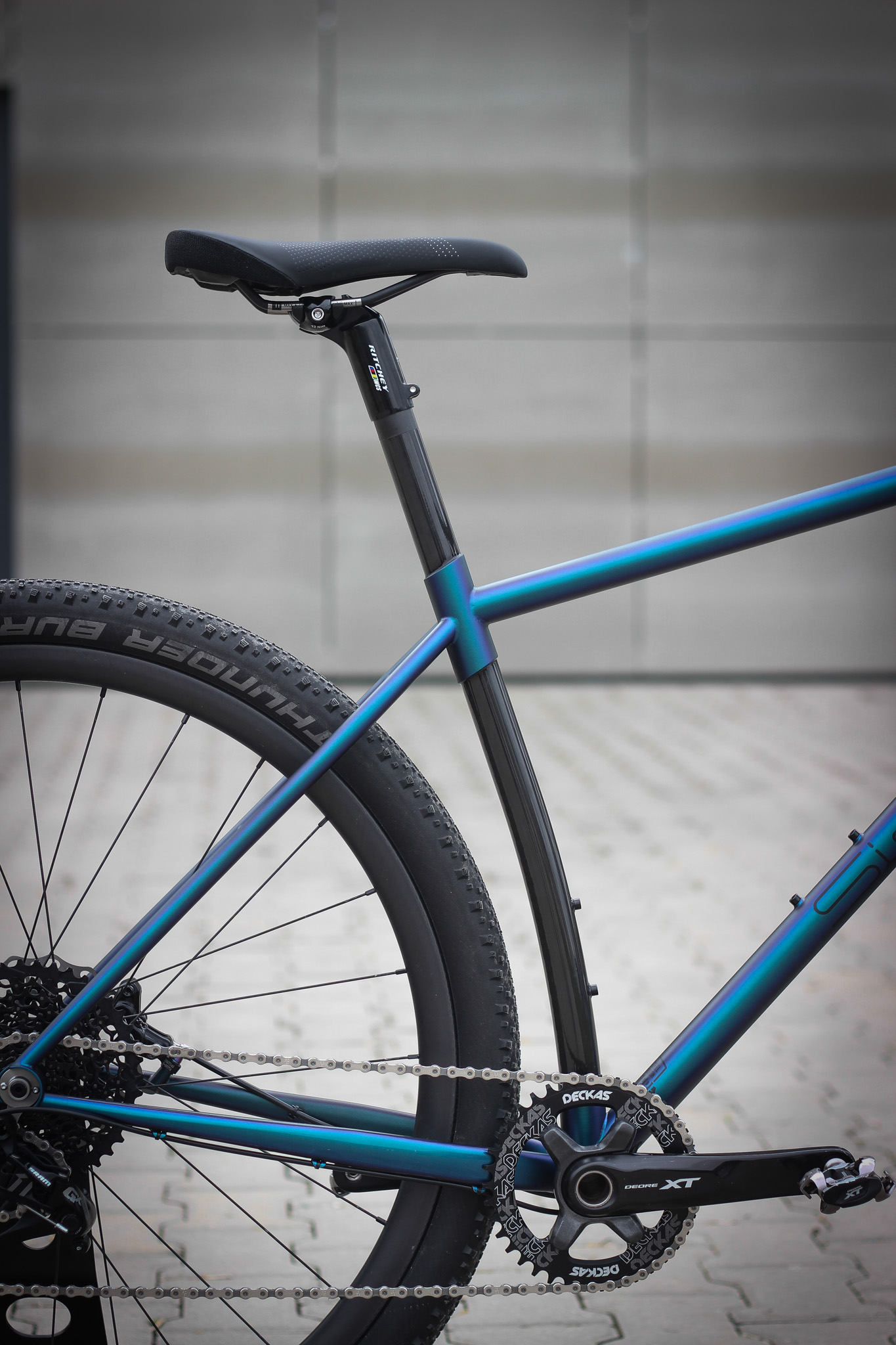 Díky prohnuté integrované sedlové karbonové trubce jsme mohli zkrátit délku zadní stavby na minimum a kolo je tak velice obratné a reaktivní. Vidlice s malou výškou tvoří s rámem kompaktní celek.