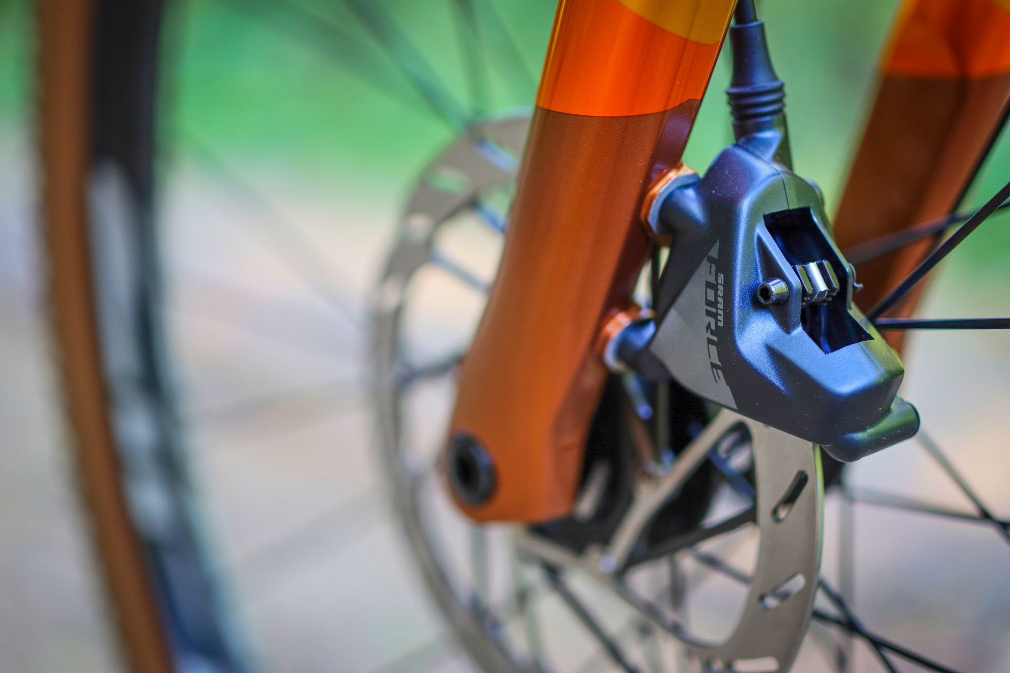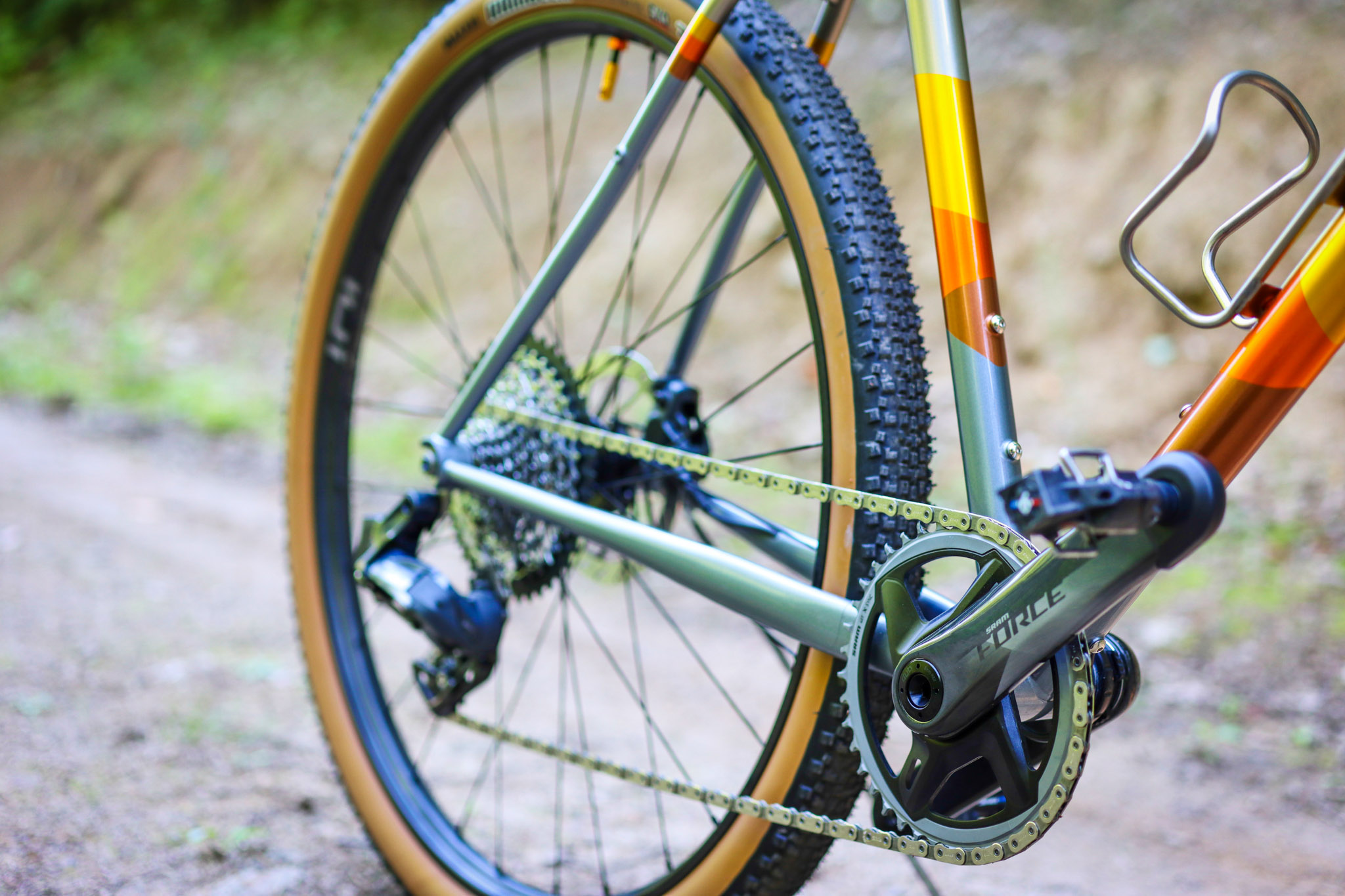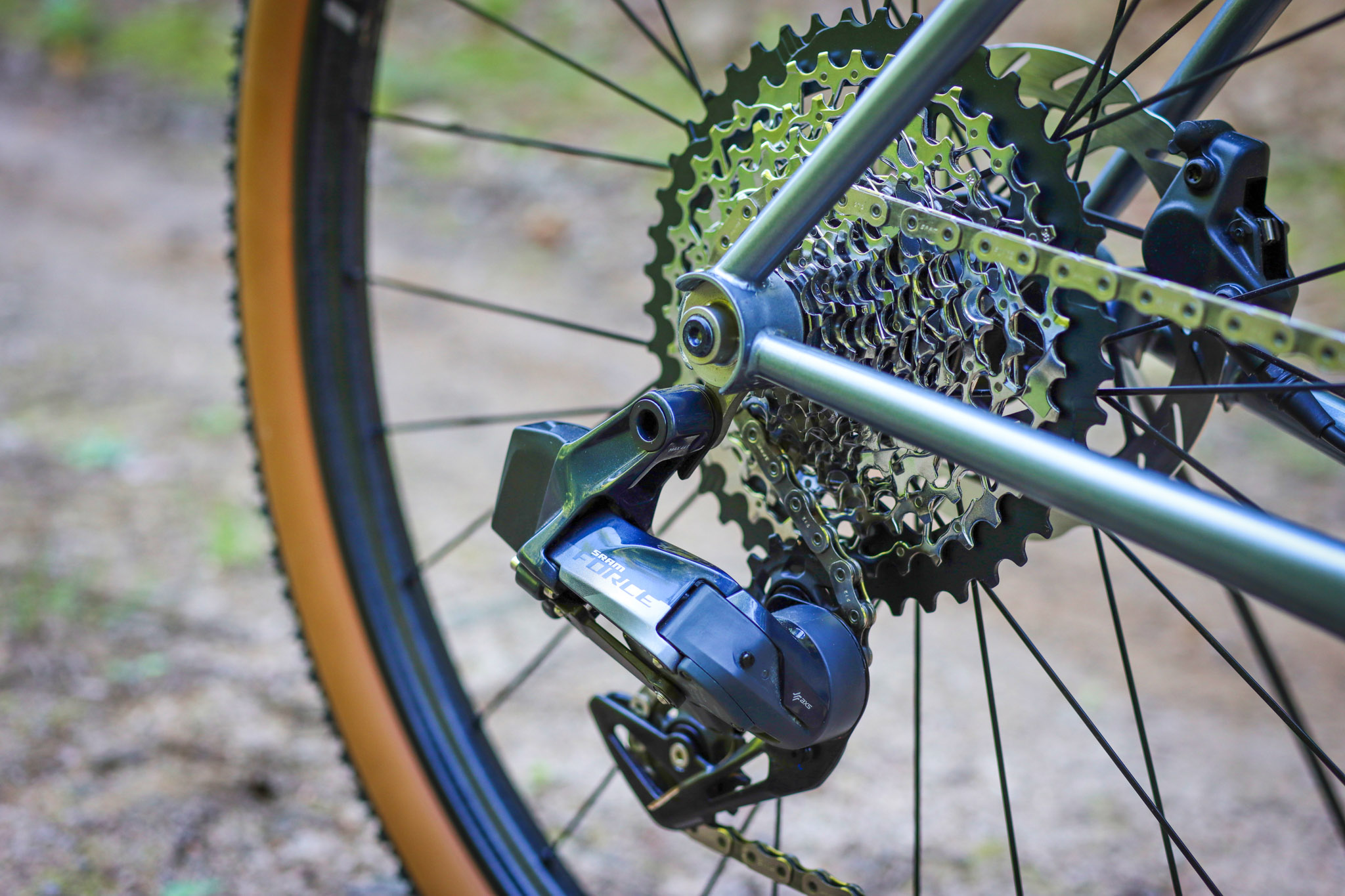 Moderní ocelový gravel s odpruženou vidlicí Rock Shox RUDY postavený na sadě SRAM Force 1×12 AXS