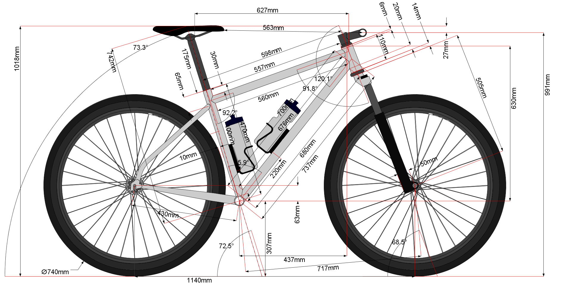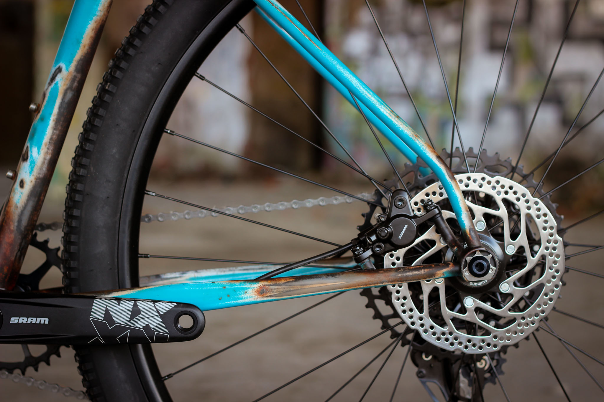 Zadní brzda má vnitřní vedení skrze vnitřní mosazné trubičky. Zadní stavba dosahuje 430 mm a dodává tak devětadvacítce potřebnou obratnost.