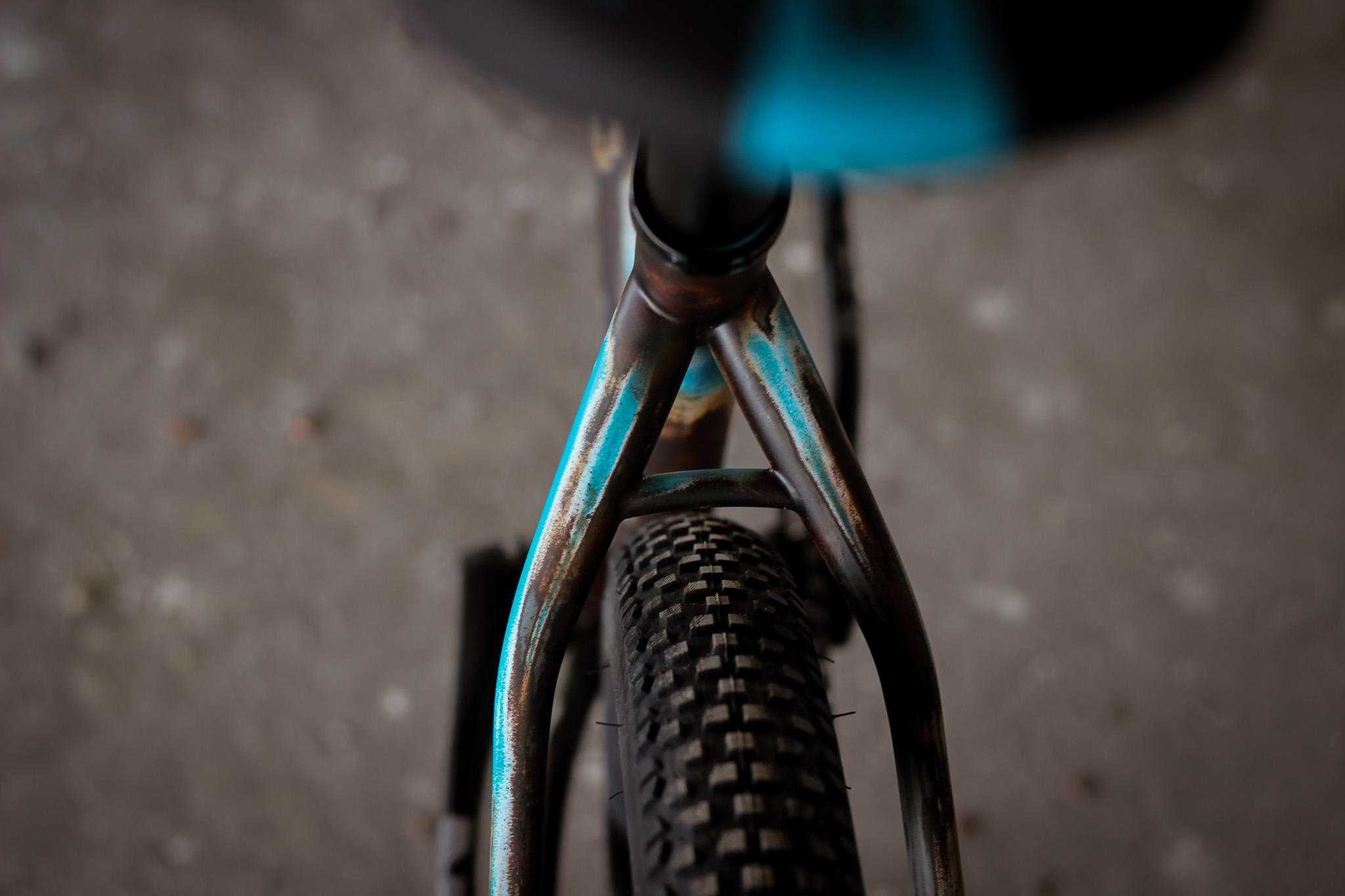 Sedlová trubka průměru 30.9 mm je připravená i pro použití teleskopické sedlovky s vnitřním vedením. Naše ocelové rámy ošetřujeme zevnitř voskem, zde vytekájící rez je pouze imitace.