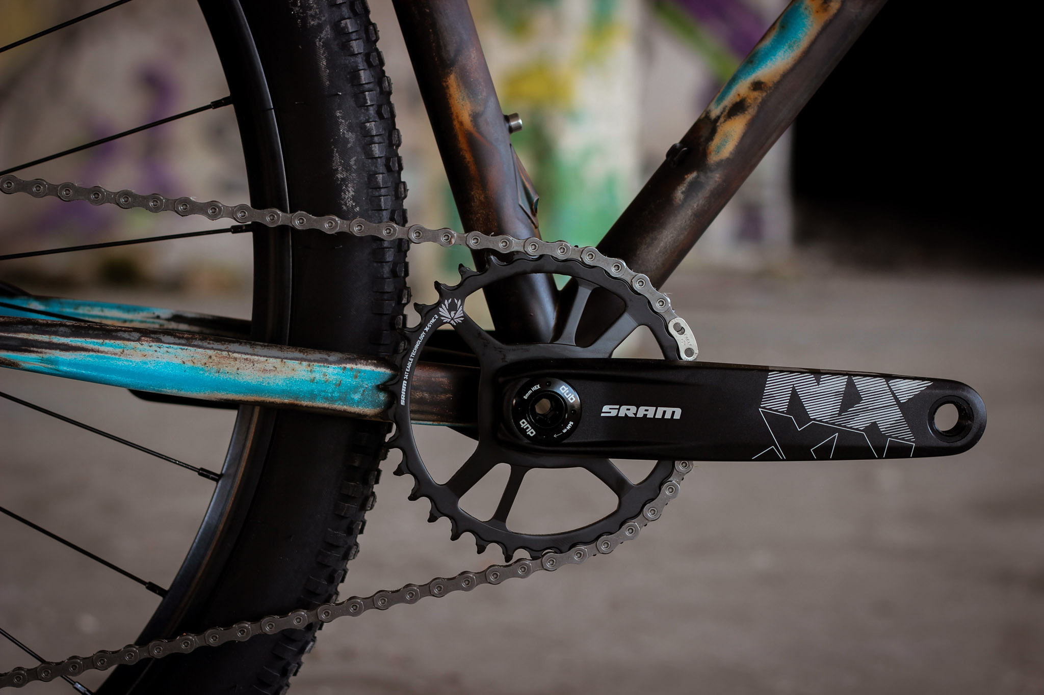 Bike je vybavený sadou Sram NX Eagle s 12 převody a převodníkem 32 zubů. Vypadá to že zákazník nepoužíval chránič pod řetěz : )