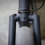 Vpředu pevná osa 15 mm a decentní loga na každé noze vidlice.