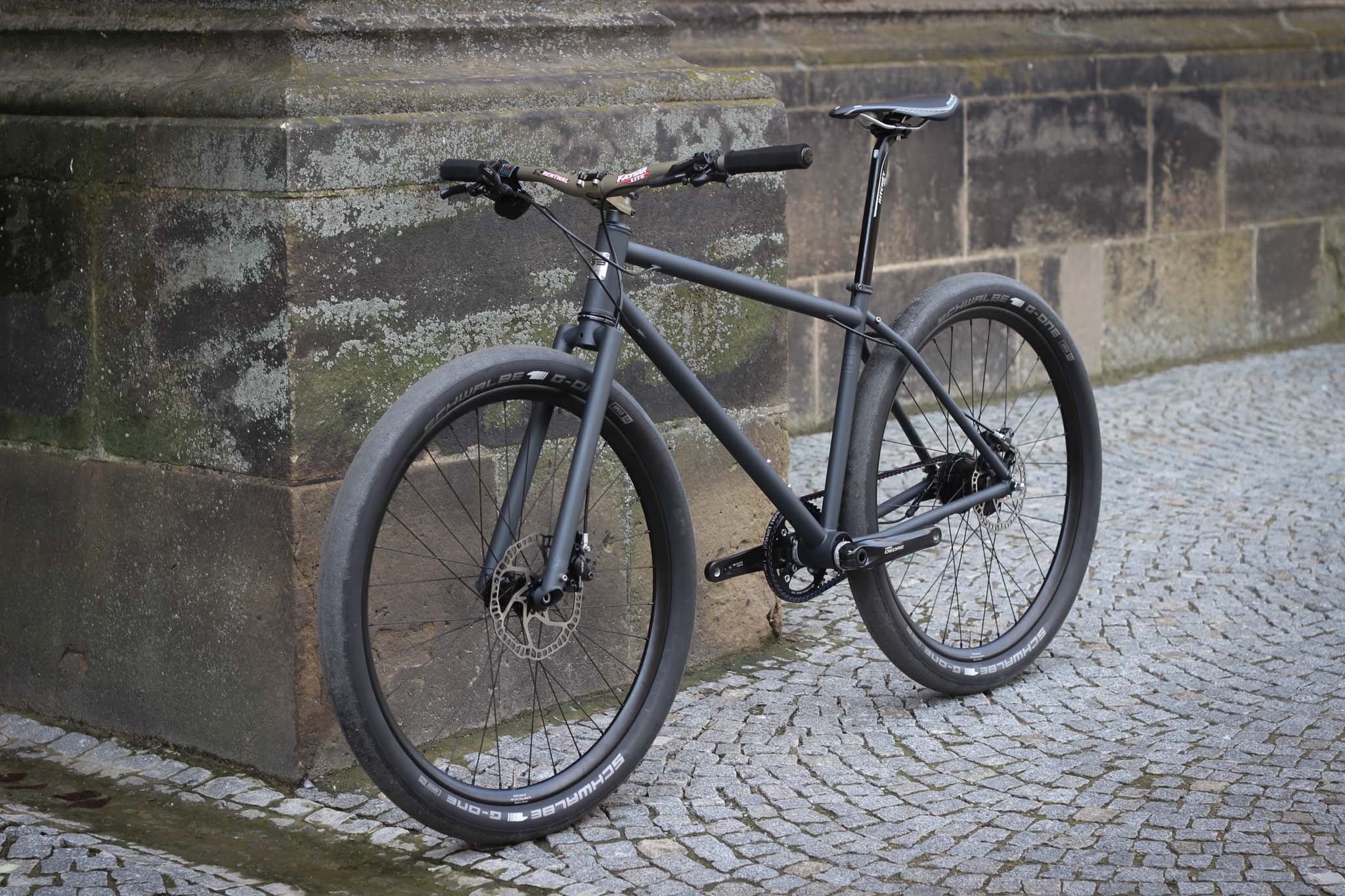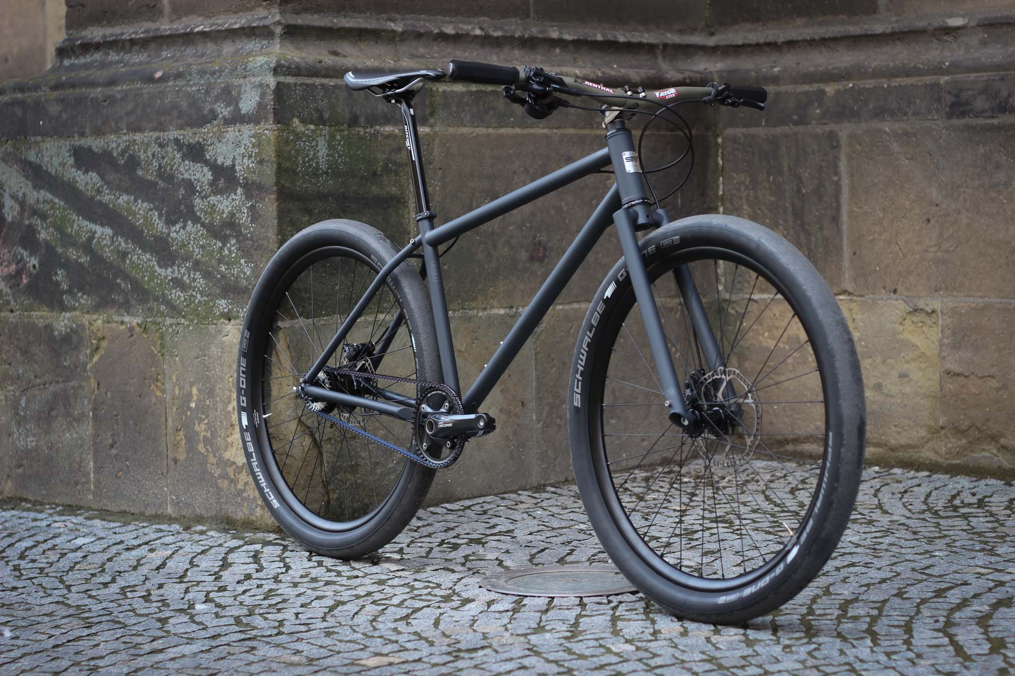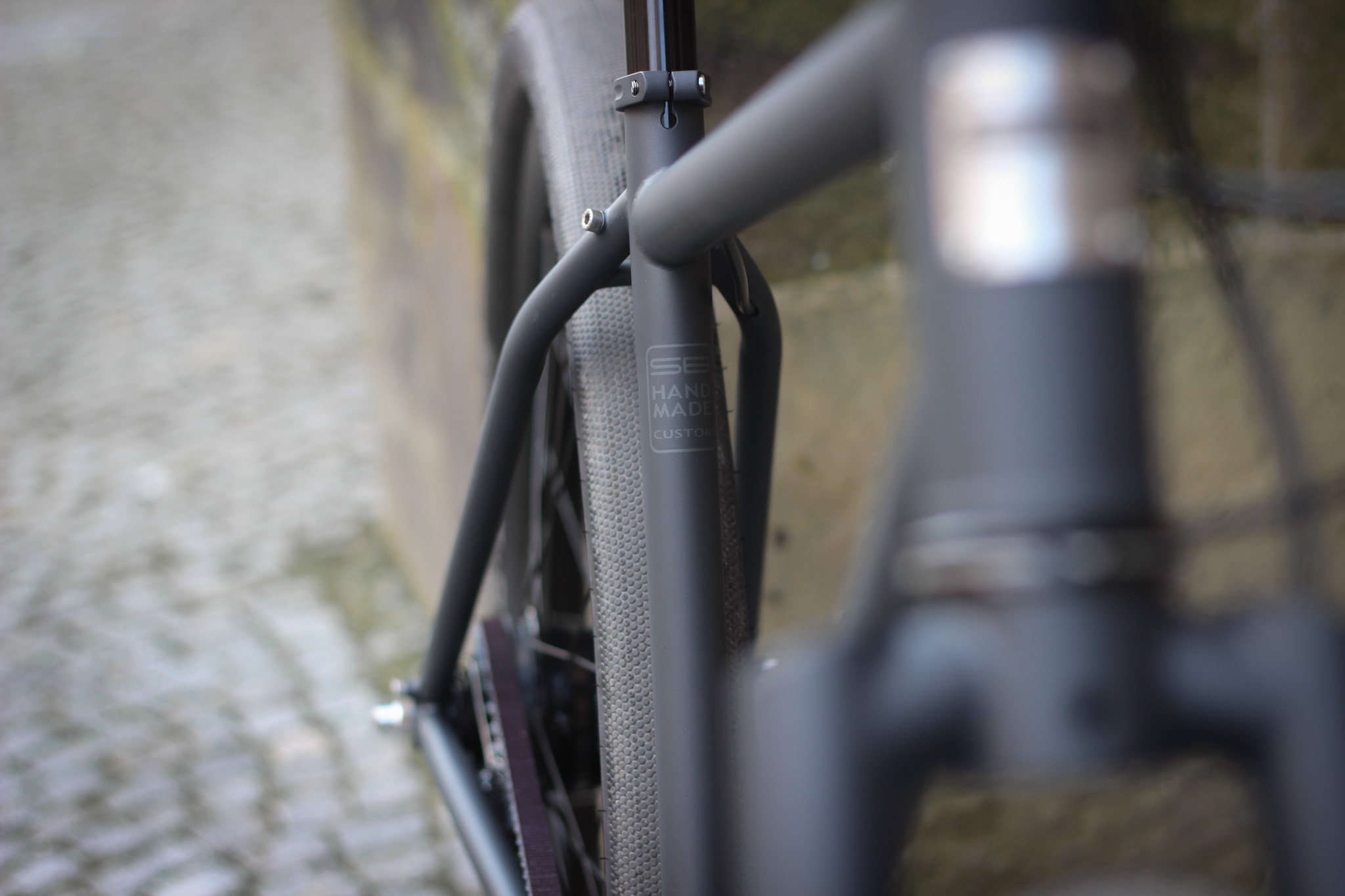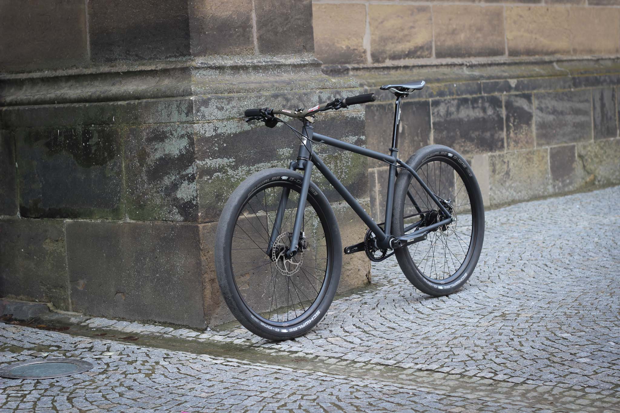 Alfine 11ti rychlostní zadní náboj a pohon řemenem Gates Carbon Drive. Tiché řešení vyžadující minimum údržby.