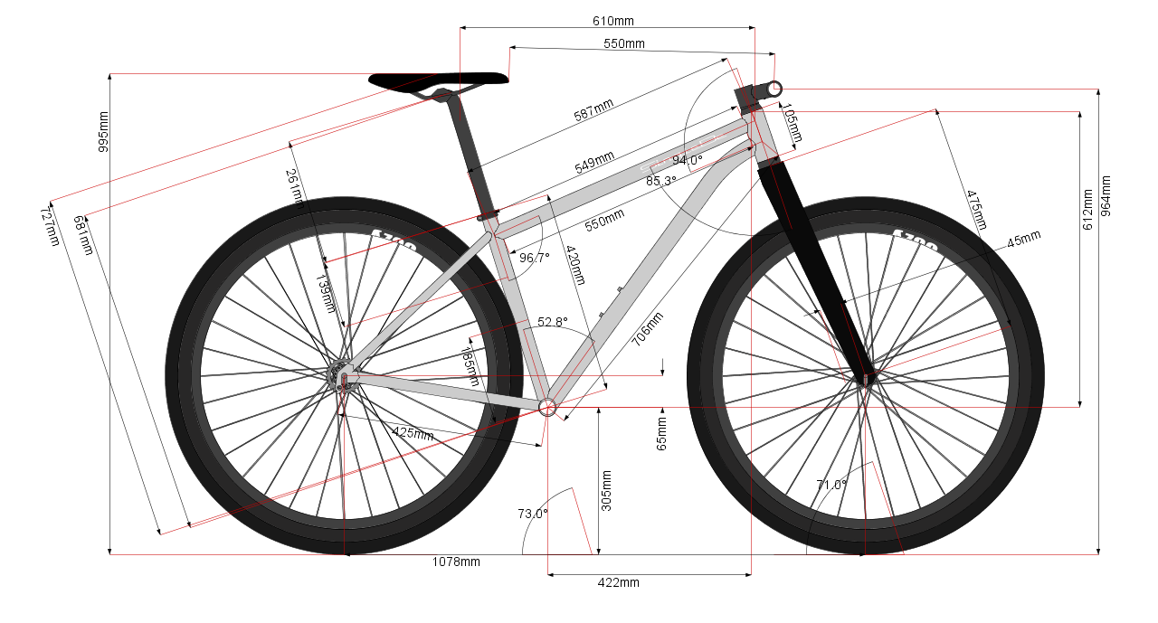 Spodní rámová trubka je ohnutá z řady Reynolds 853 a umožňuje tak minimalizovat „stack“ parameter. Zadní stavba je z tenkých nezeslabovaných CrMo trubek, zakázkově ohnuté a umožní tak velkou průchodnost pro široké pláště a to i při zachování krátké zadní stavby, která je min. 425 mm. Pro větší průchodnost blátem je sedlová trubka vybraná v místě kontaktu s pláštěm.