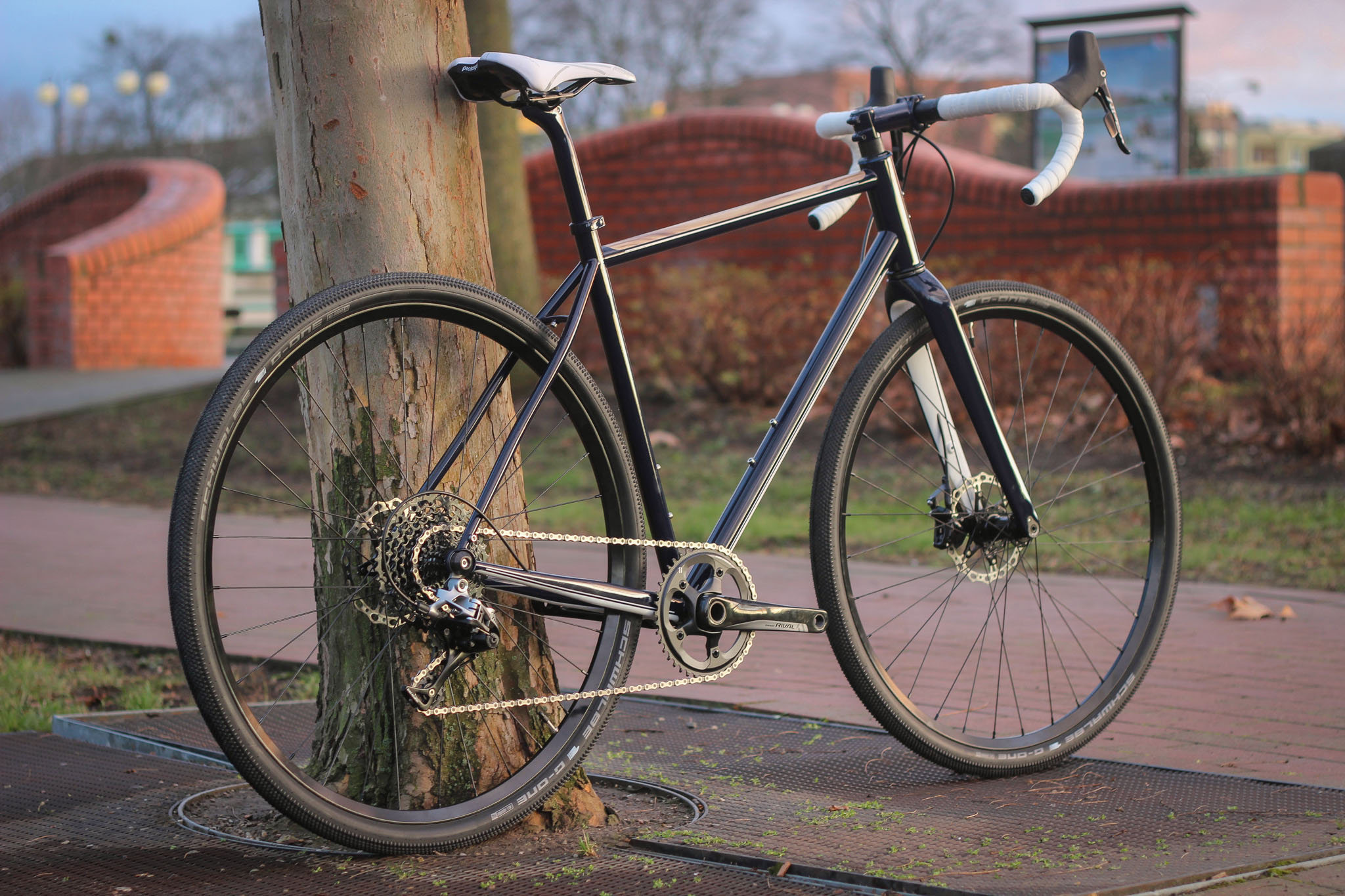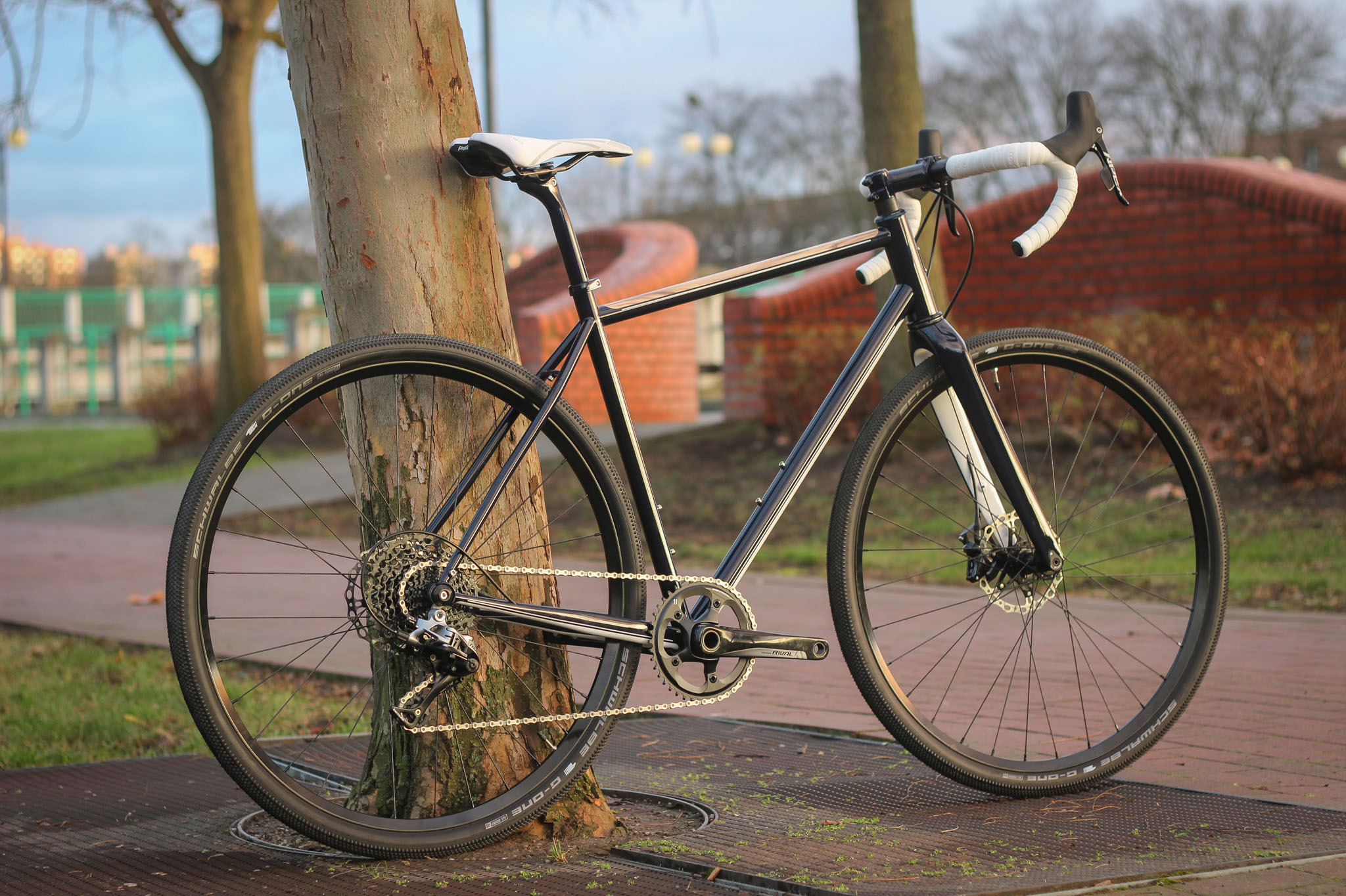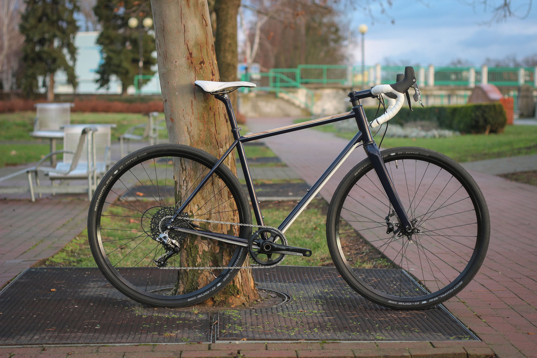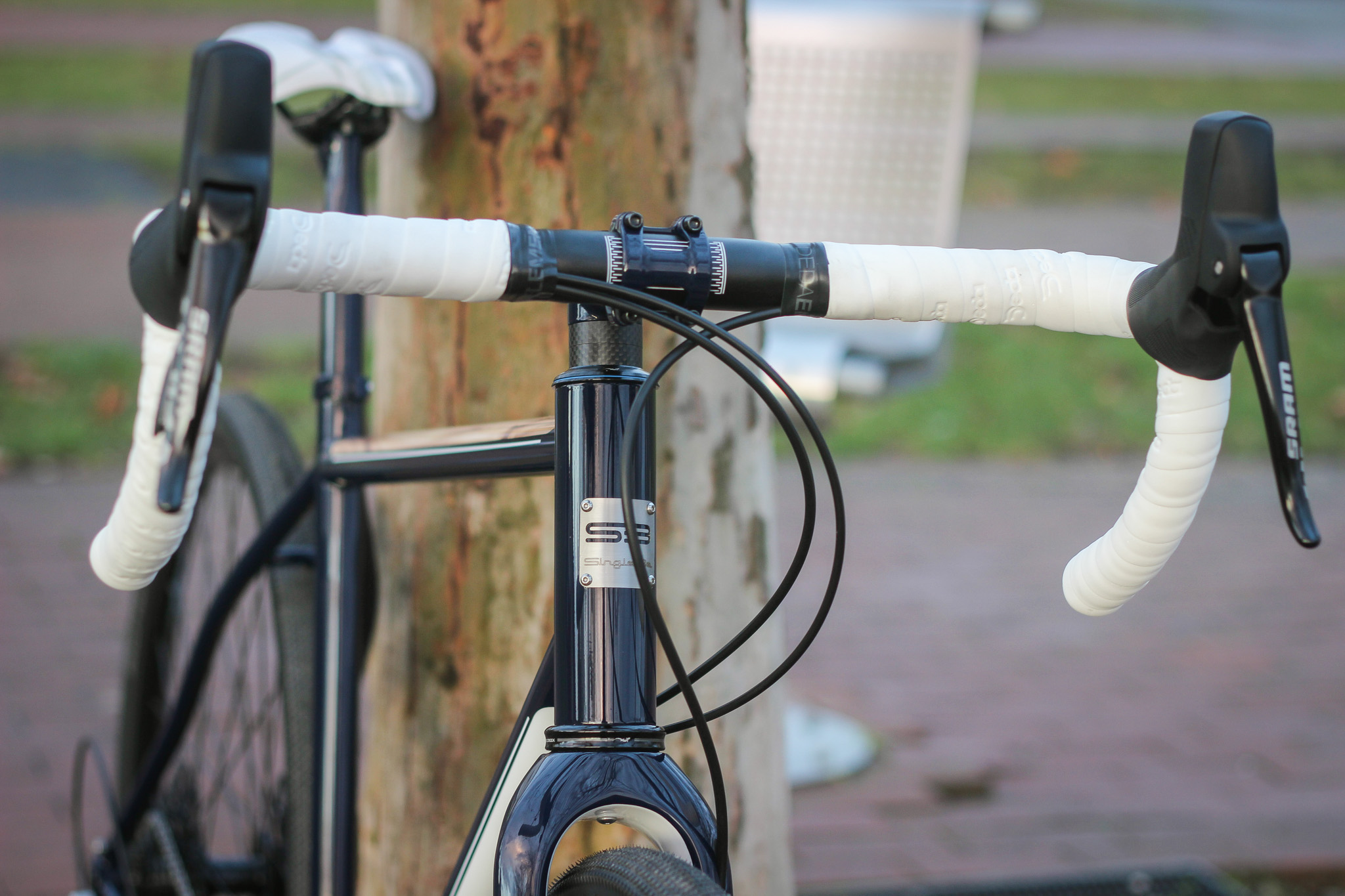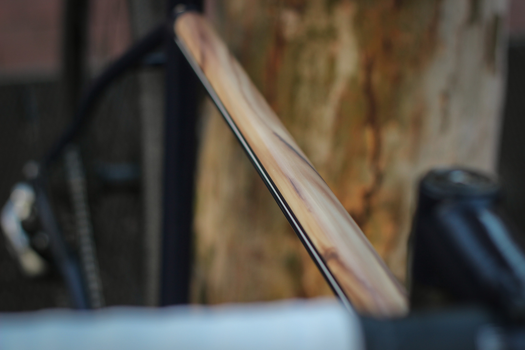 Zakázkový ocelový gravel bike SingleBe Swan 115. Ocelový rám Reynolds se zadní stavbou Dedacciai, vnitřní vedení hadiček a bowdenů. Design inspirovaný luxusní jachtou Swan 115, kde je na horní rámové trubce lakovaná imitace týkového dřeva.