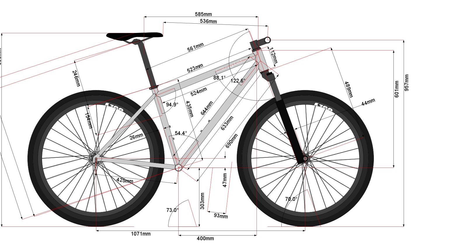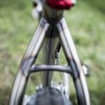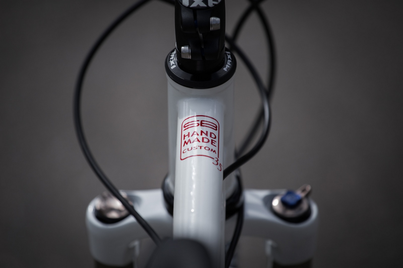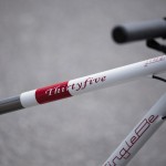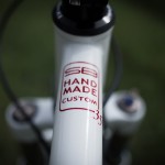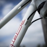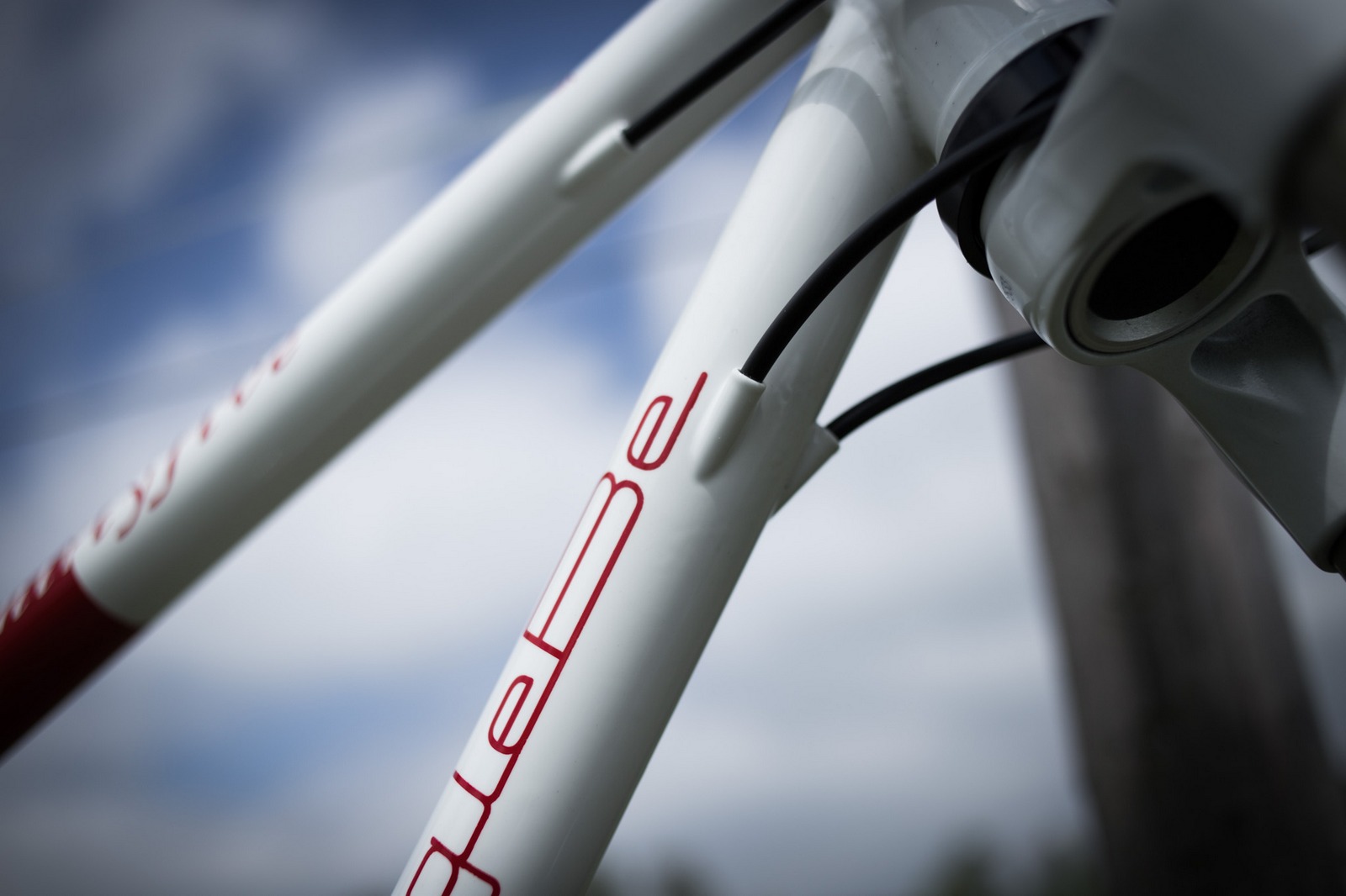 Rám ze základní zeslabované ocele, pevné patky, taper vidlice a půlený bílo červeno ocelový design s custom lakovanými nápisy.