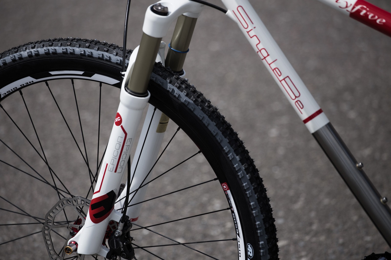 Vidlice SR Suntour Epicon 2014 již s olejovým mazáním a předělaným designem, který ladí k celkovému vzhledu kola.