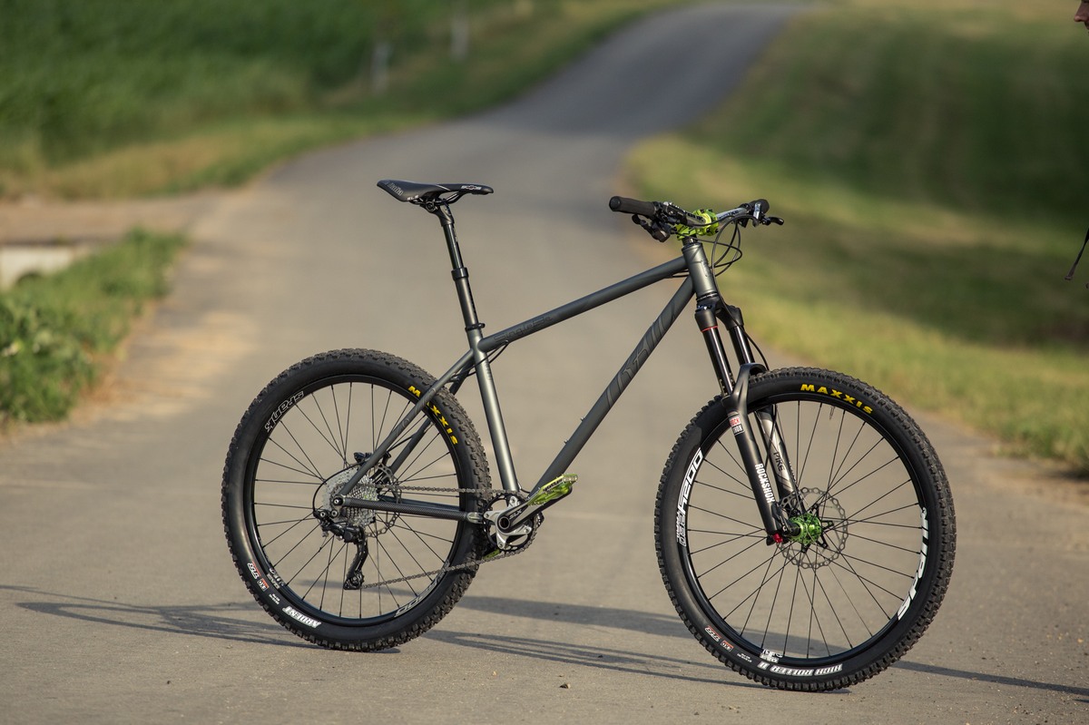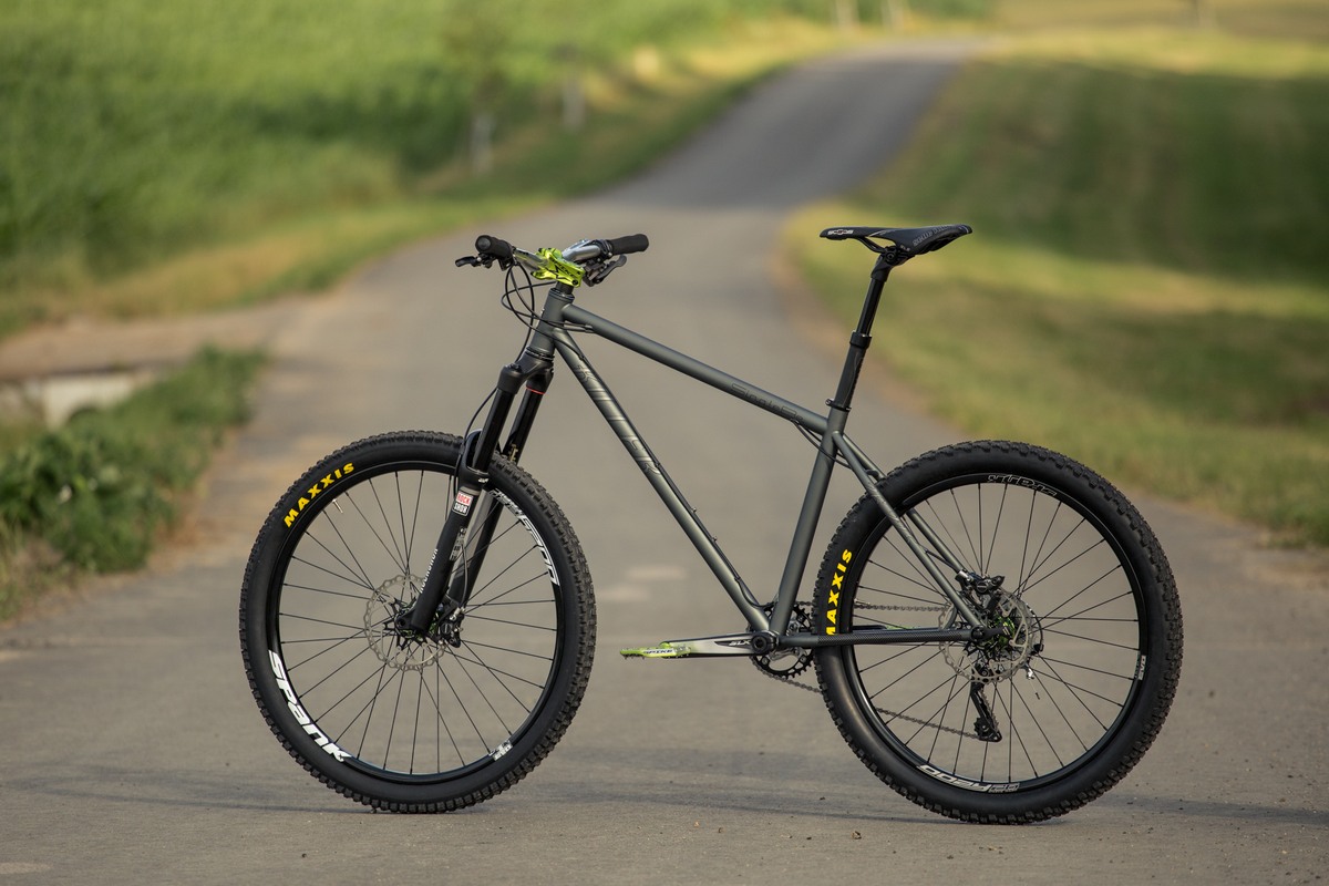 Trailově orientované kolo Trail-Killer 26.27.5 je postaveno na ocelovém rámu Dedacciai ZeroUno, špičkové vidlici RockShox PIKE 150 mm RCT3 a dle přání zákazníka na různých velikostech předního a zadního kola. Vpředu 650b Spank Oozy ráfek obutý na MAXXIS HighRoller II s odolností EXO a samozřejmě tubeless ready a vzdau je také Oozy, ale v klasice 26″ a pro rychlejěí jízdu je zde Ardent v rozměru 26×2.4 a samozřejmě také ve specifikaci EXO a TLR.