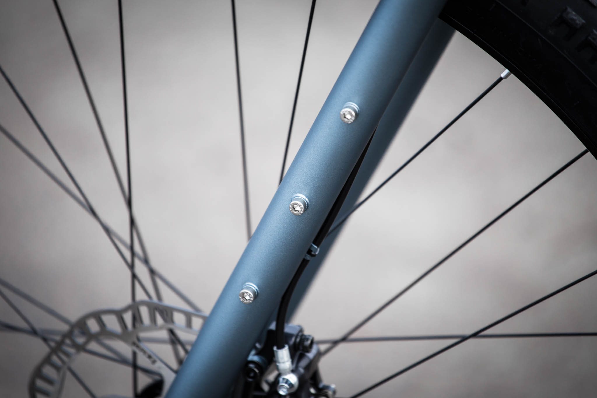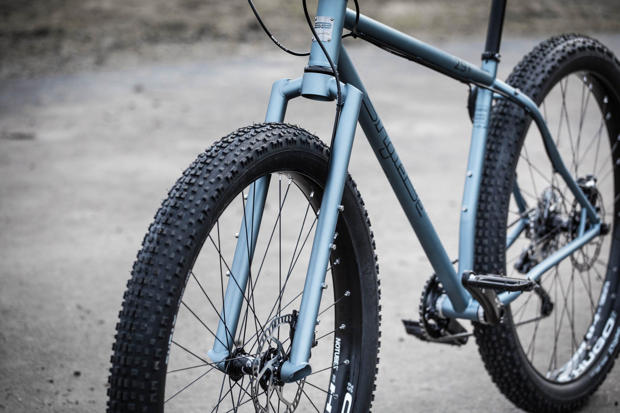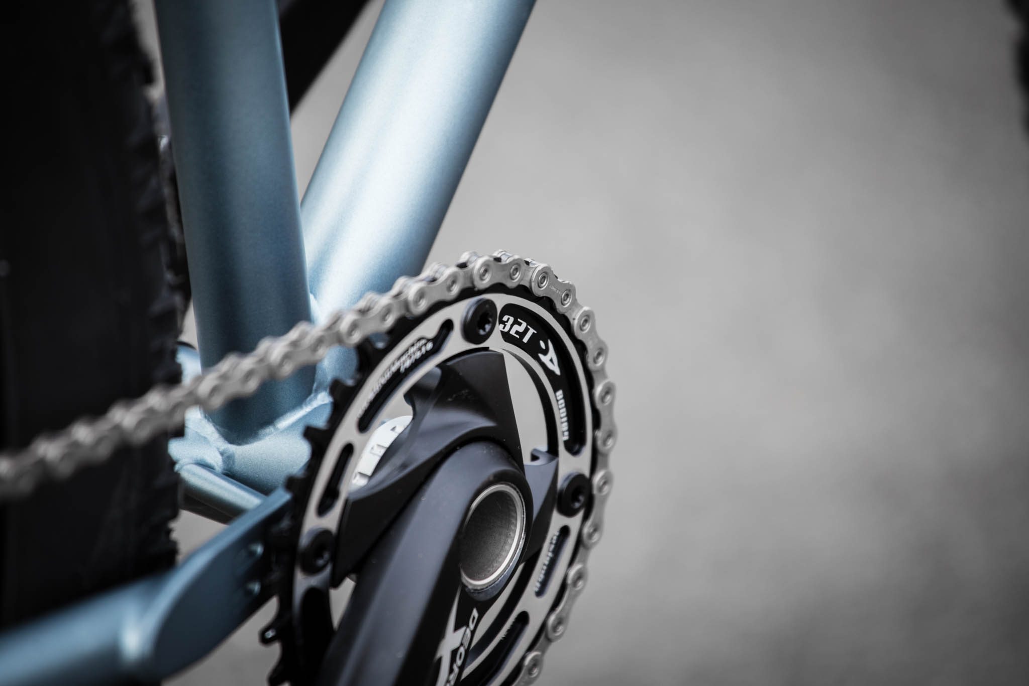 Díky designu oblasti za šlapacím středem vzniklo dostatek prostoru na pláště 29+ (Surly Knard 78 mm široký) a také na převodník o velikosti až 36z na pozici třetího převodníku (řet. linka 57 mm).