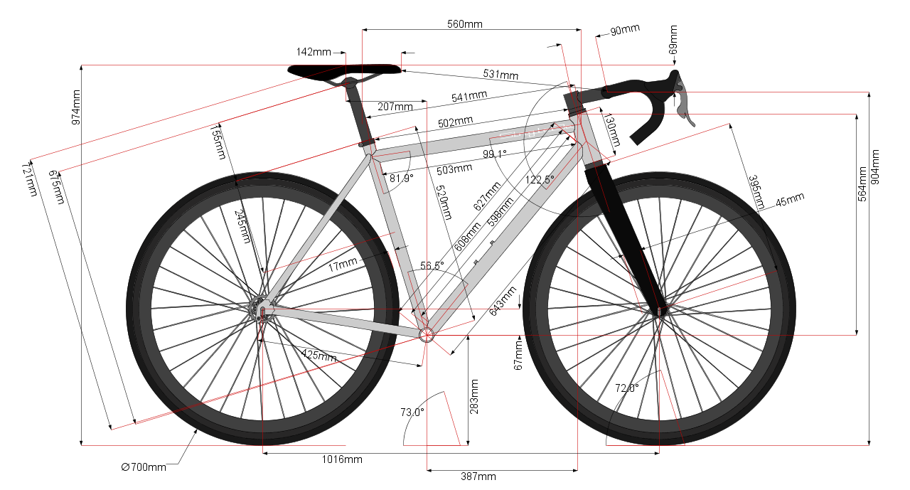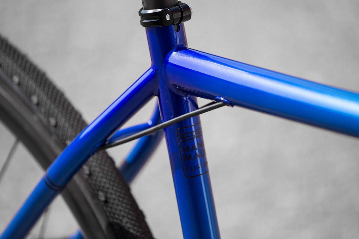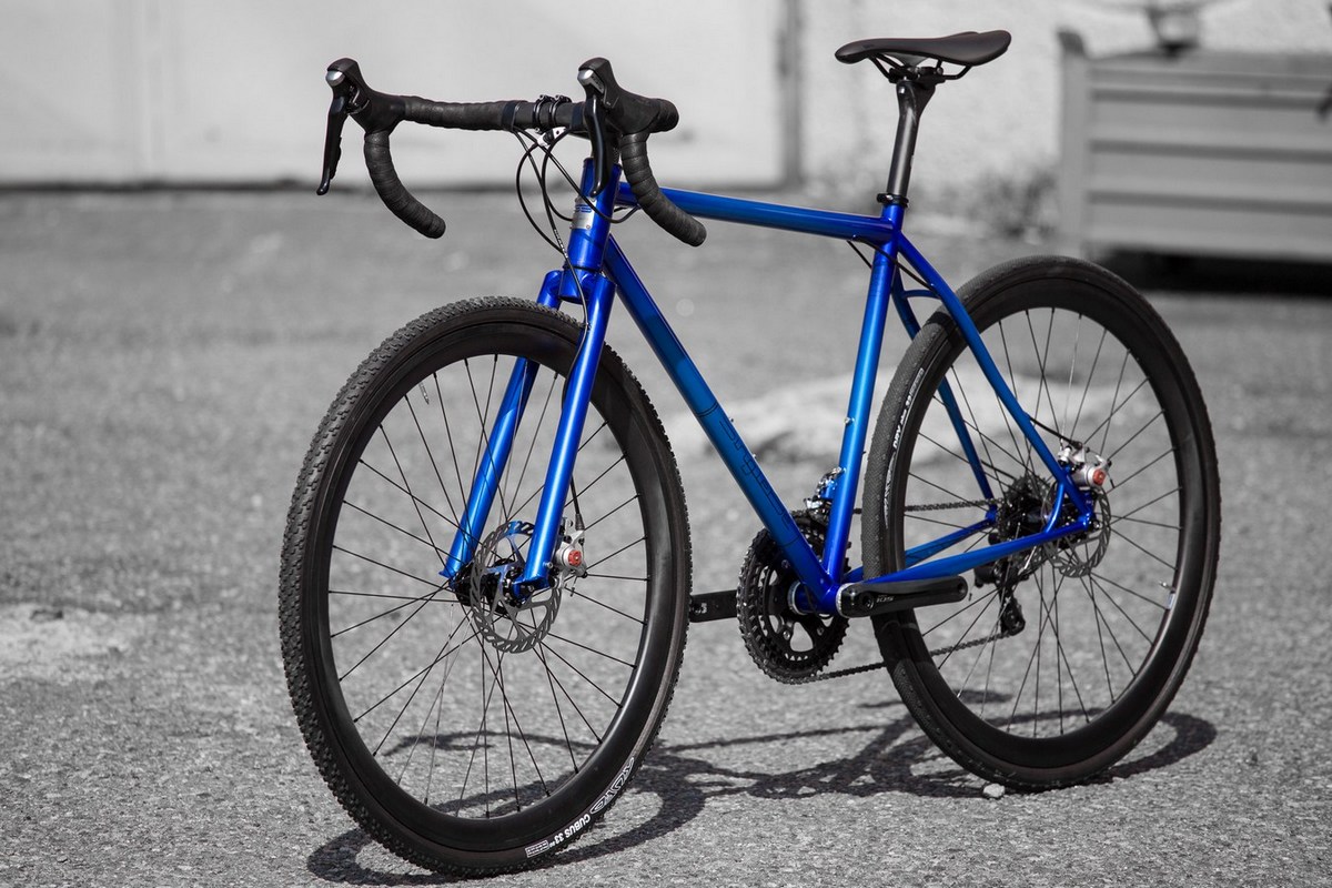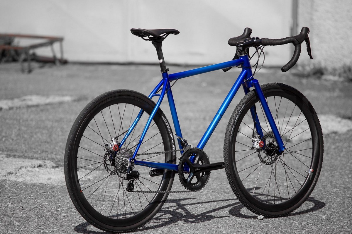 Kola jsou zapletená na 38 mm vysokých karbonových ráfcích se širokým „wide – U“ profilem. Galusky od českého výrobce TUFO, vpředu pro vedení stopy hrubší Cubus 33mm a vzadu Dry Plus 32mm (předek vede zadek jede). Dále jsou na kole osazena karbonová řidítka a karbonová sedlovka singlebe s našim logem.